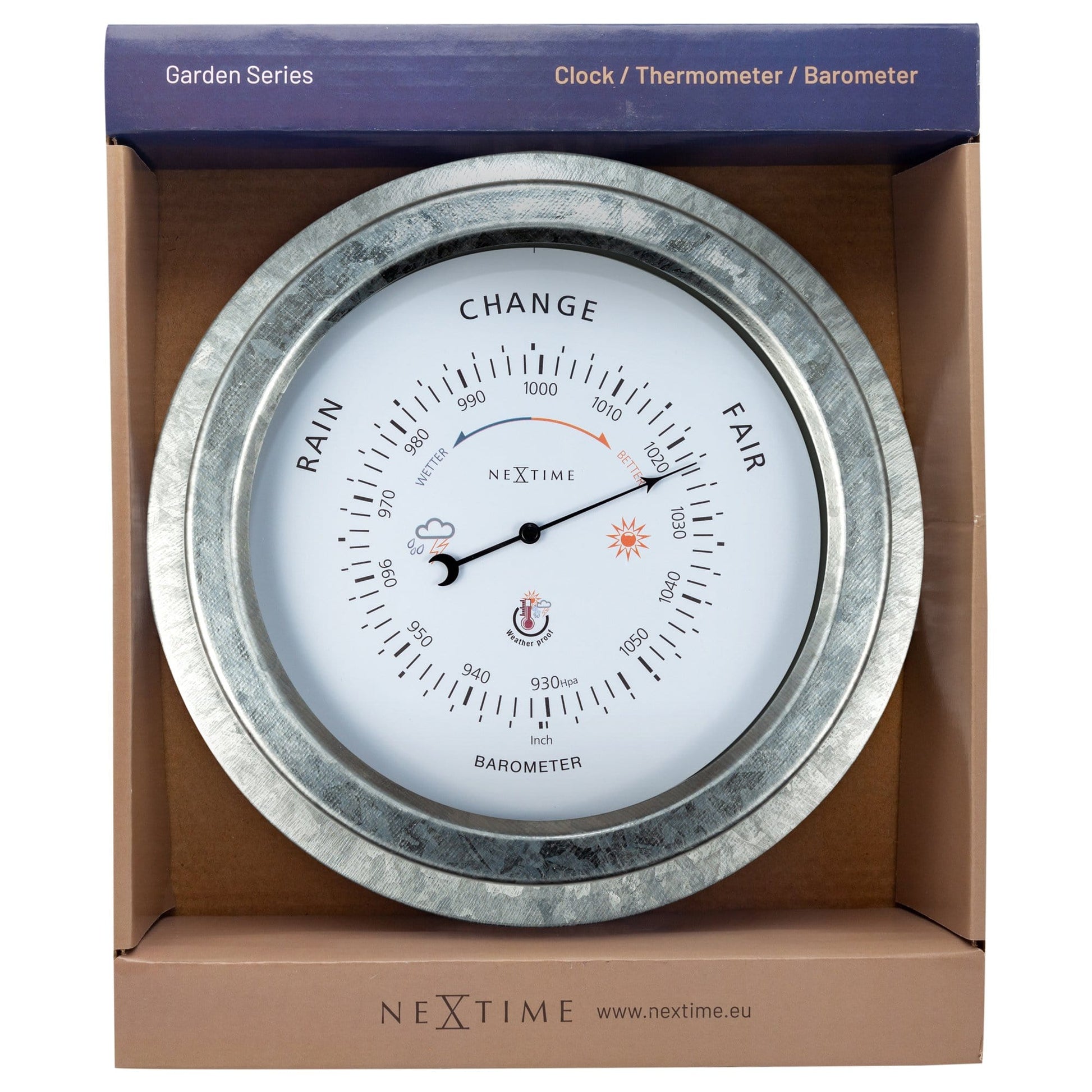 The NeXtime "Orchid" is a metal garden Barometer that can be used outside. The use of extra rubber rings to protect the water from reaching the delicate parts of the barometer is making this meter special and weather proof. The barometer is robust and from metal and with Ø 22cm it will fit everywhere. The dial is white and has numbers and drawings for easy understanding of the current air pressure. Because of the black hand, the meter is easy to read. The meter doesn't need any batteries.