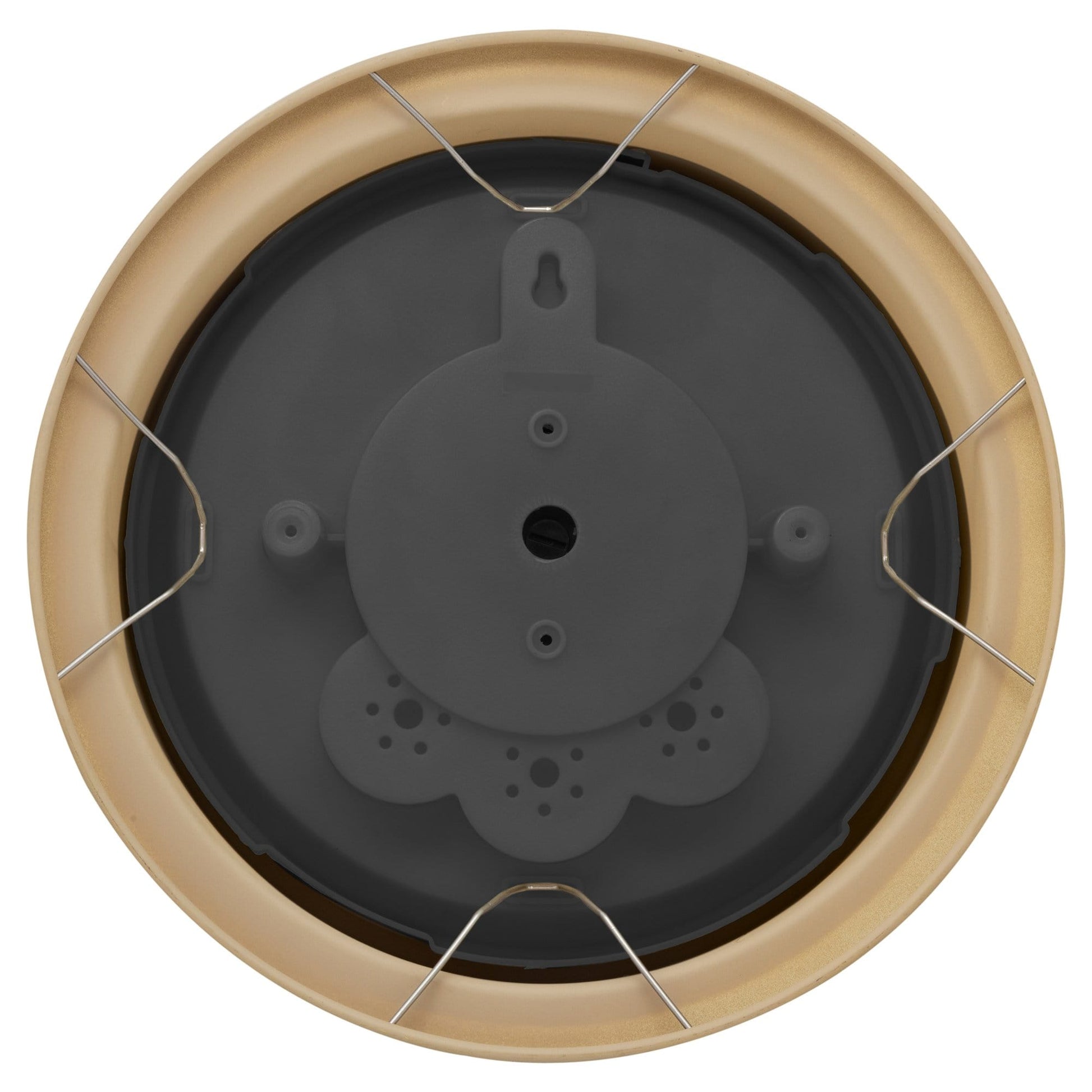 The NeXtime "Lily" is a metal garden thermometer that can be used outside. The use of extra rubber rings to protect the water from reaching the delicate parts of the thermometer is making this meter special and weather proof. The thermometer is robust and from metal and with Ø 22cm it will fit everywhere. The dial is white and has big numbers and blue and red colors for easy understanding of the current temperature. Because of the black hand, the meter is easy to read. The meter doesn't need any batteries.