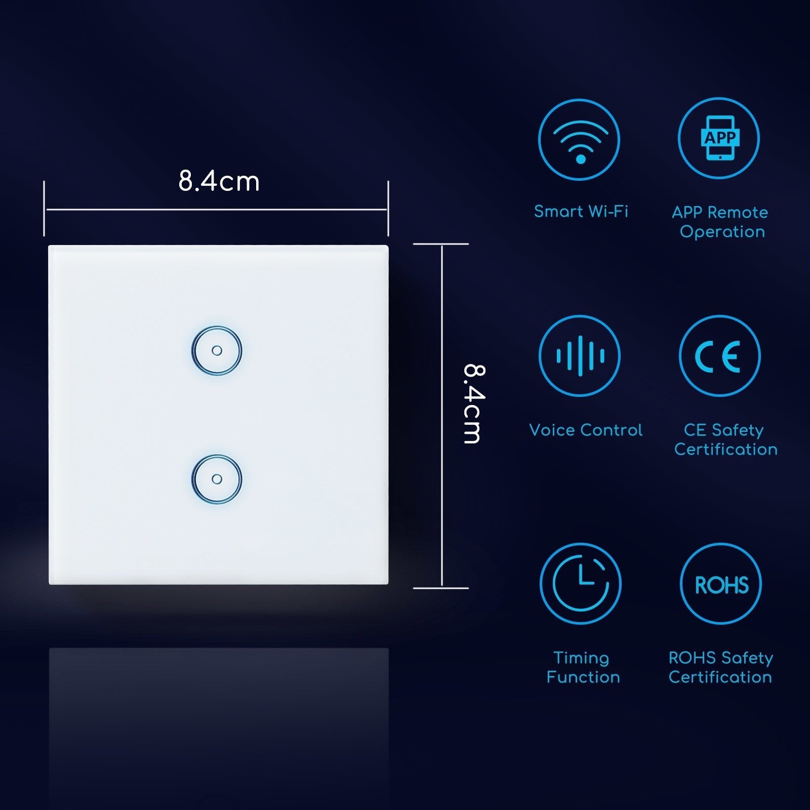 WiFi Smart Switch slimme schakelaar | 2 lichtpunten - inbouw - touch bediening - glas | 230V 10A