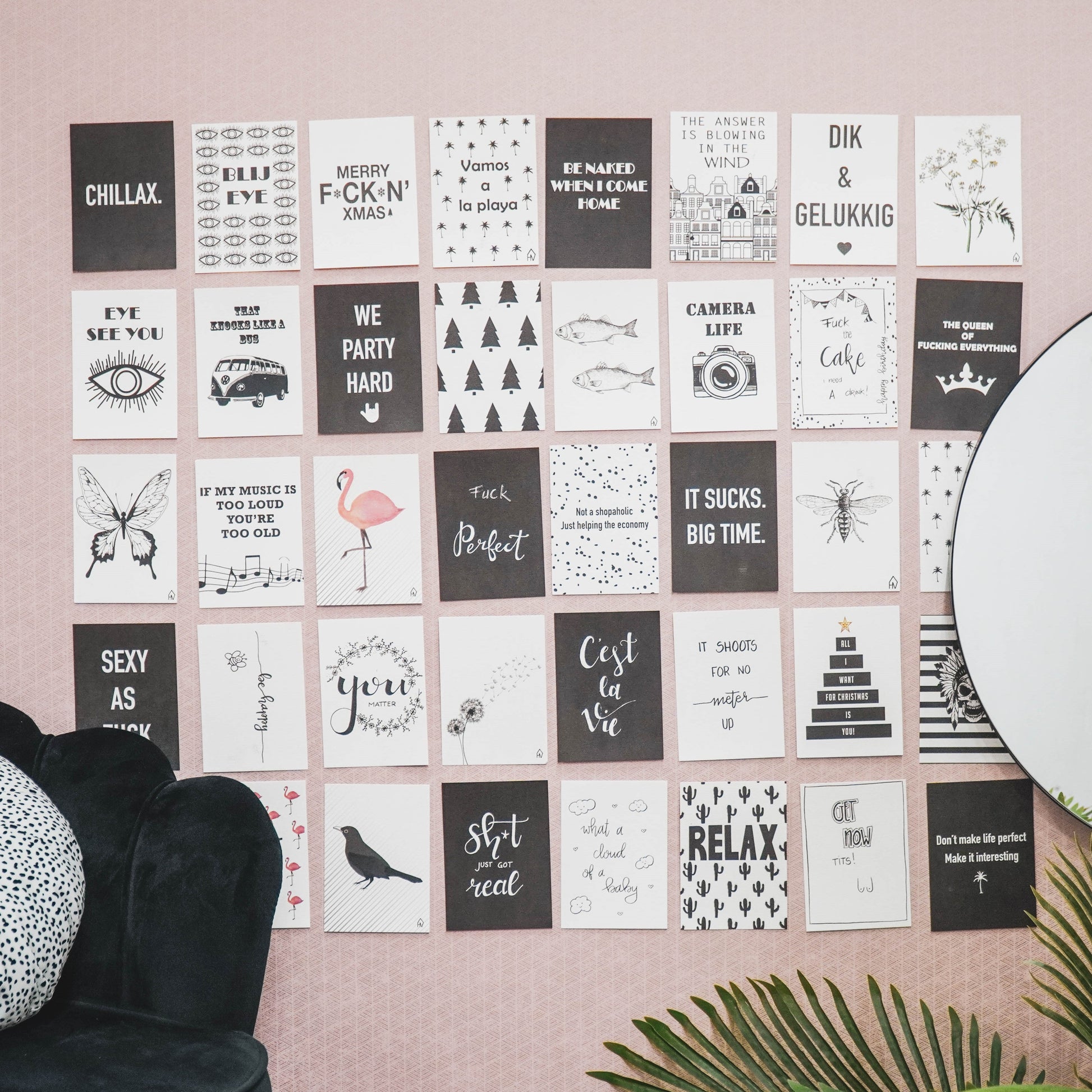 STATIONERY ROCKS - Wij houden van quotes, het is gewoon kunst. Ben je op zoek naar kaarten met een toffe of stoere quote, een mooie afbeelding of een grappige tekst? Dan vind je die sowieso in de Housevitamin collectie van zwart wit postkaarten. De kaarten zijn de finishing touch voor jouw interieur en de leukste post die je naar iemand kan sturen. Deze leuke kaart met grappige quote 'Be Happy' kun je sturen naar iemand die opgevrolijkt kan worden of wanneer iemand weer het geluk heeft een jaar ouder te zijn geworden.