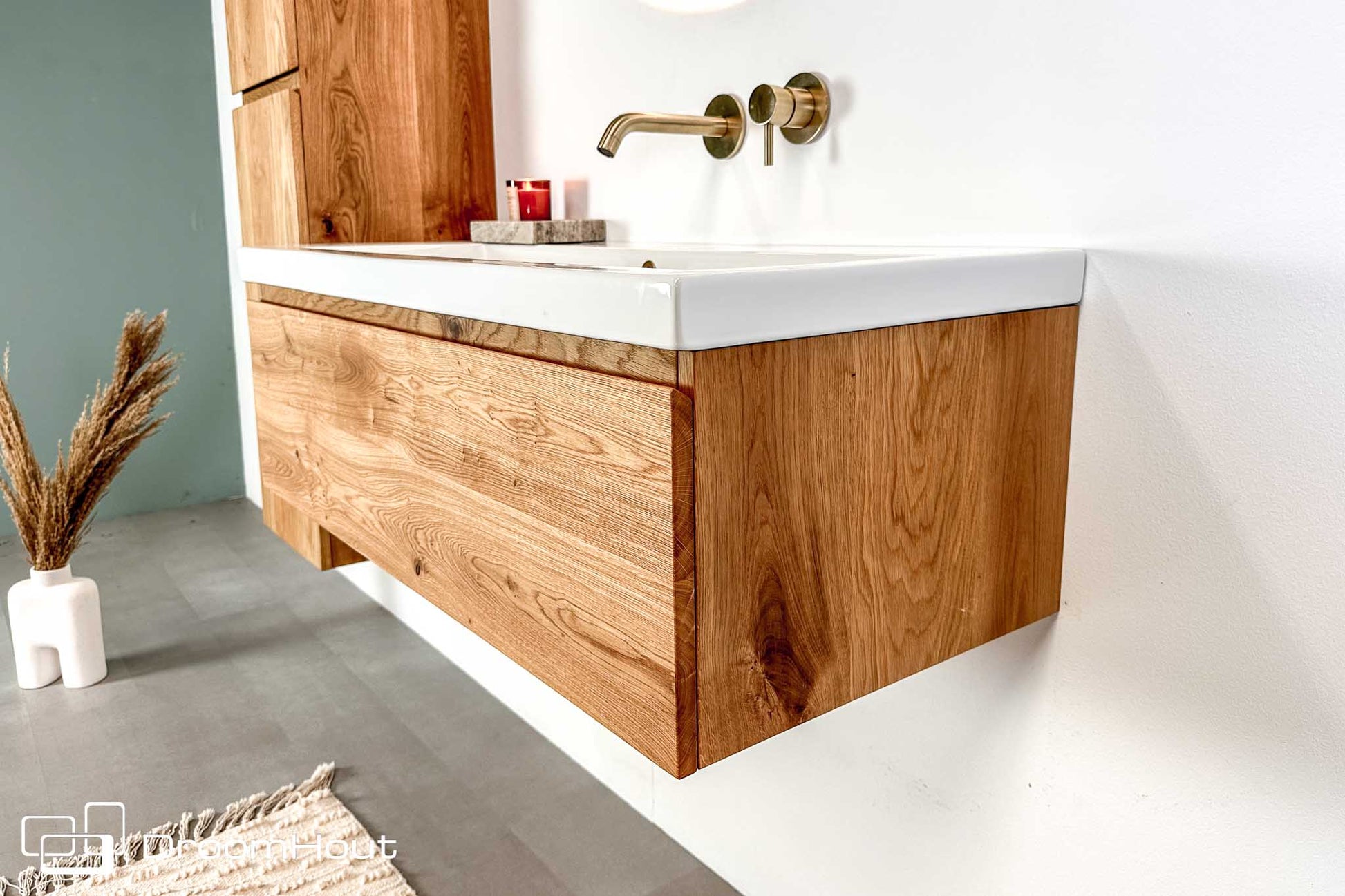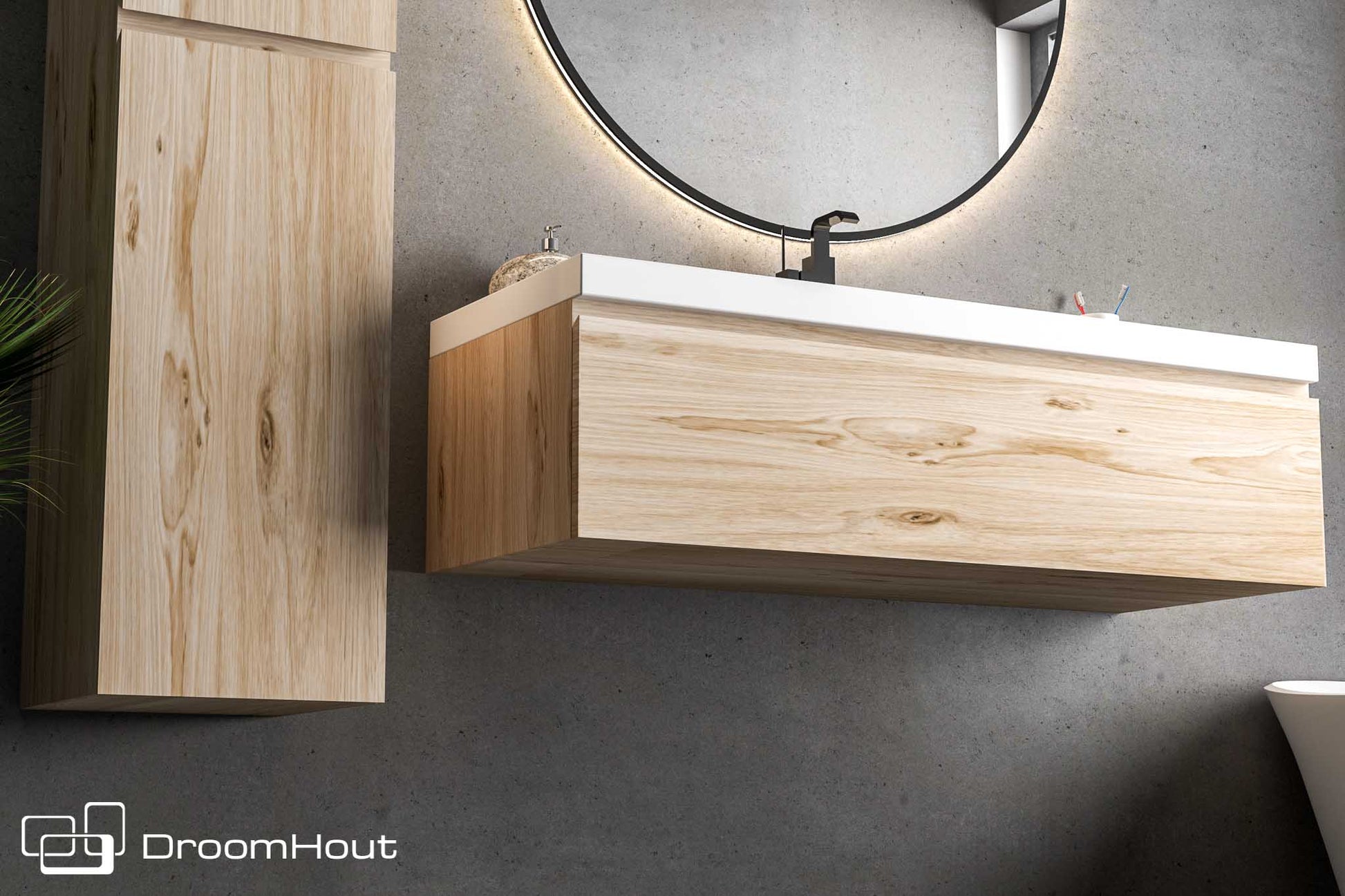Wij van DroomHout weten als geen ander hoe belangrijk het is dat de badkamer een fijne plek moet zijn om je dag te starten (en te eindigen). Met dat idee in ons achterhoofd hebben wij een badkamermeubel-lijn bedacht die de badkamer omtoveren tot een plek waar je graag bent. Een van deze meubels is de Aqua badkamermeubel, een prachtige badkamermeubel met 1 lade die een serene sfeer geeft aan elke badkamer! Ben je op zoek naar een meubel met 2 laden? óók die hebben we in onze lijn. Bijvoorbeeld het badkamermeubel Wellness van Droomhout.