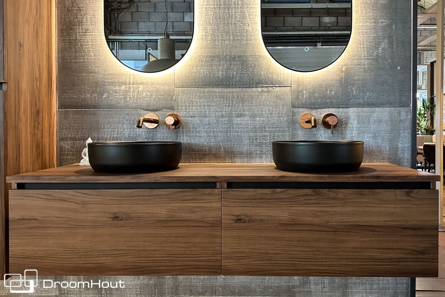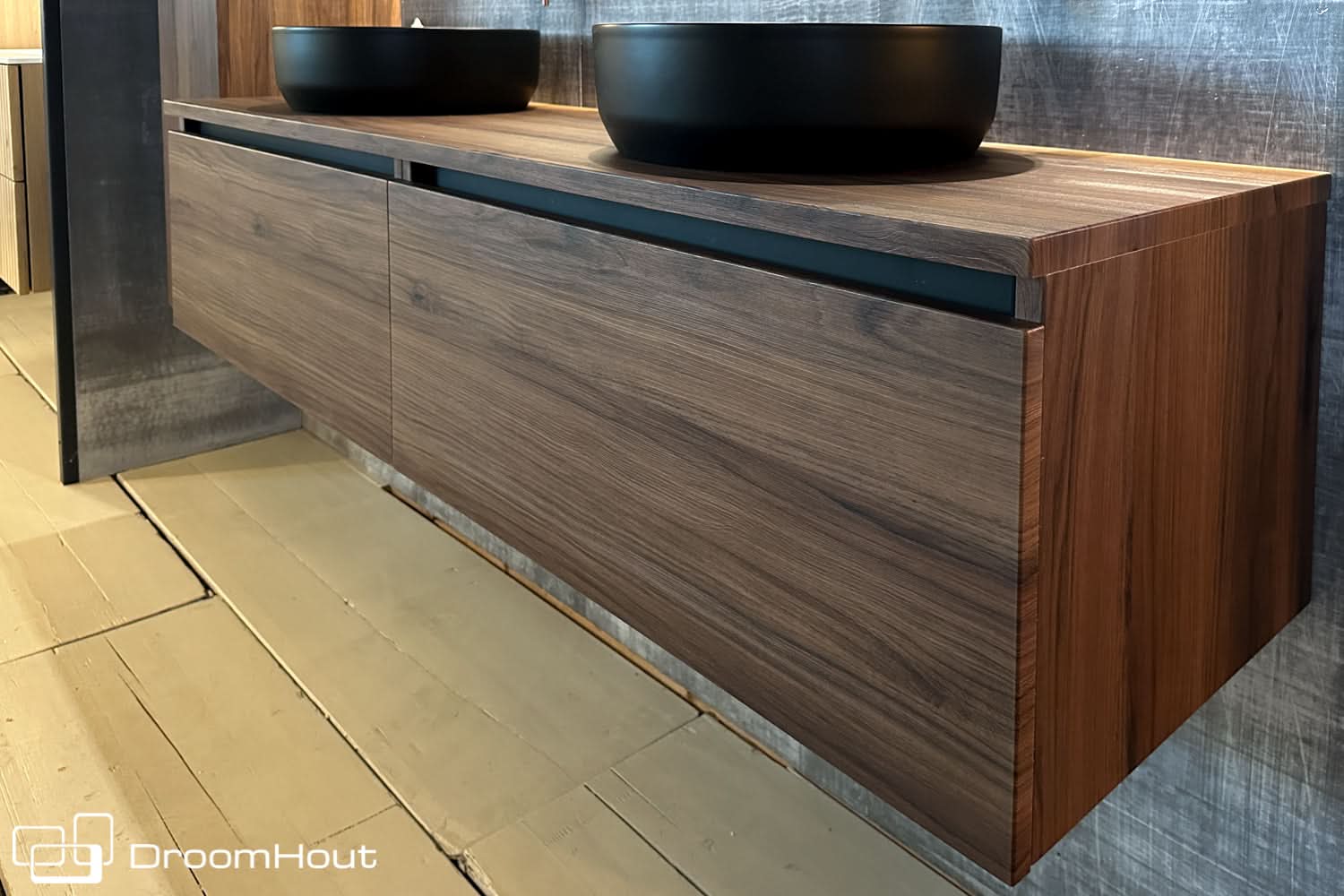 Houd je van de sfeervolle uitstraling van hout in je badkamer? Dit badkamermeubel Bliss is gemaakt van HPL, maar dan nèt echt. Het reliëf oppervlak geeft een extra echt gevoel van hout aan het badkamermeubel. Het badkamermeubel is gemakkelijk op te hangen en easy in gebruik. Het materiaal HPL is net wat goedkoper dan massief hout, waardoor dit badkamermeubel net iets voordeliger uitvalt dan onze massief houten badkamermeubels.