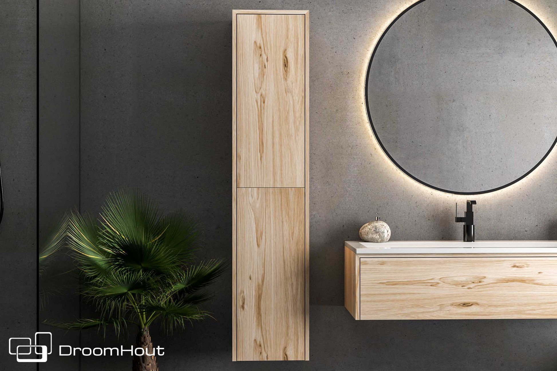 Combineer het badkamermeubel Spa met een hoge 'zwevende' kast van 160 cm hoog, met dat zelfde fijne tip-on systeem. Achter twee mooi afgewerkte deuren, zitten vier handige planken met een diepte van 40 cm. Zo kun je echt al je losse spullen opbergen. Badkamermeubel spa combineren met een grote, bijpassende spiegel kan ook goed en maakt je badkamer helemaal af en stijlvol! Dit meubel eerst live zien? Kom naar onze design studio in Utrecht, daar hangt dit fraaie badkamercombi klaar om bewonderd te worden compleet met waskom en wastafelmengkraan Shine.