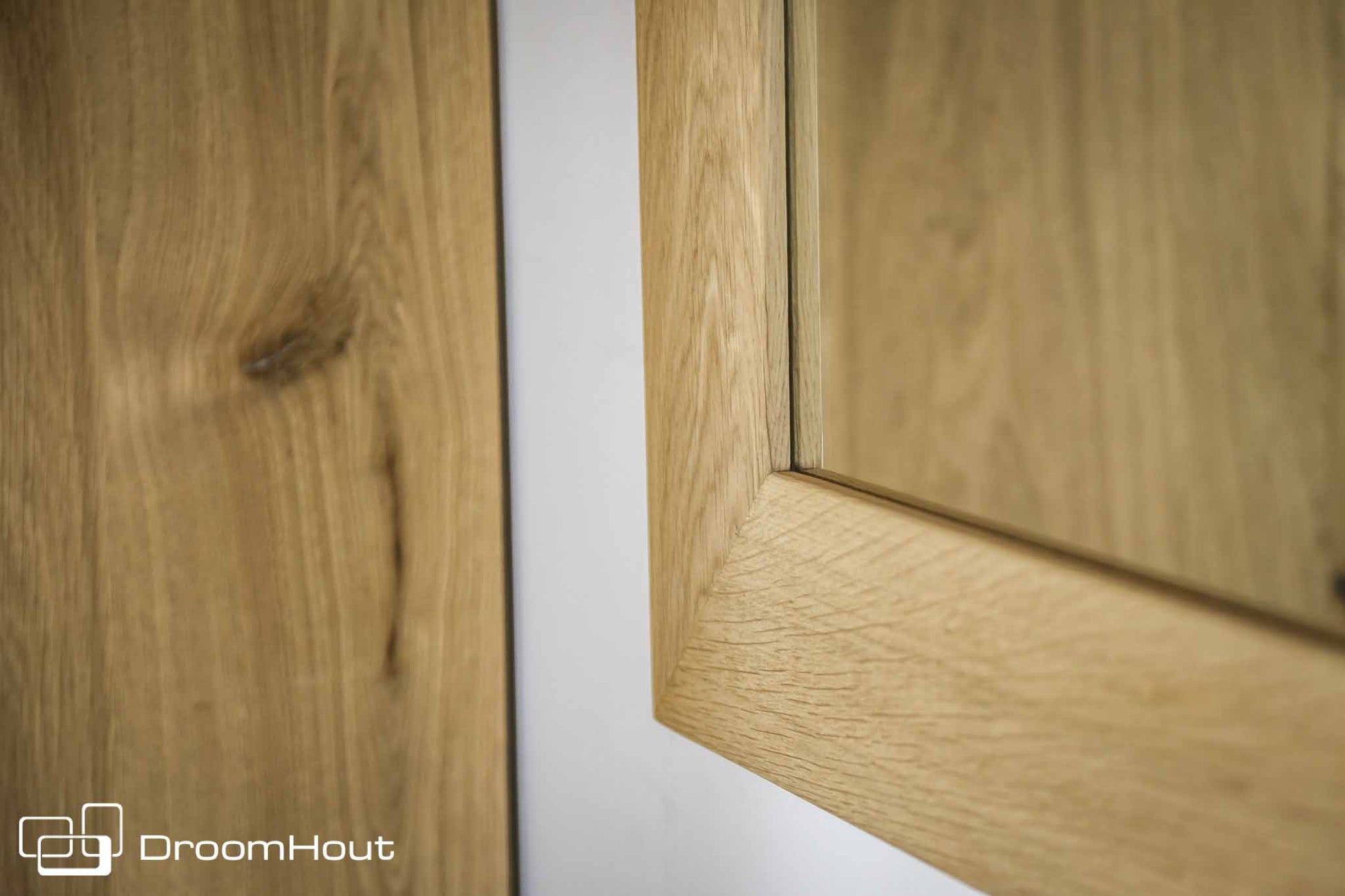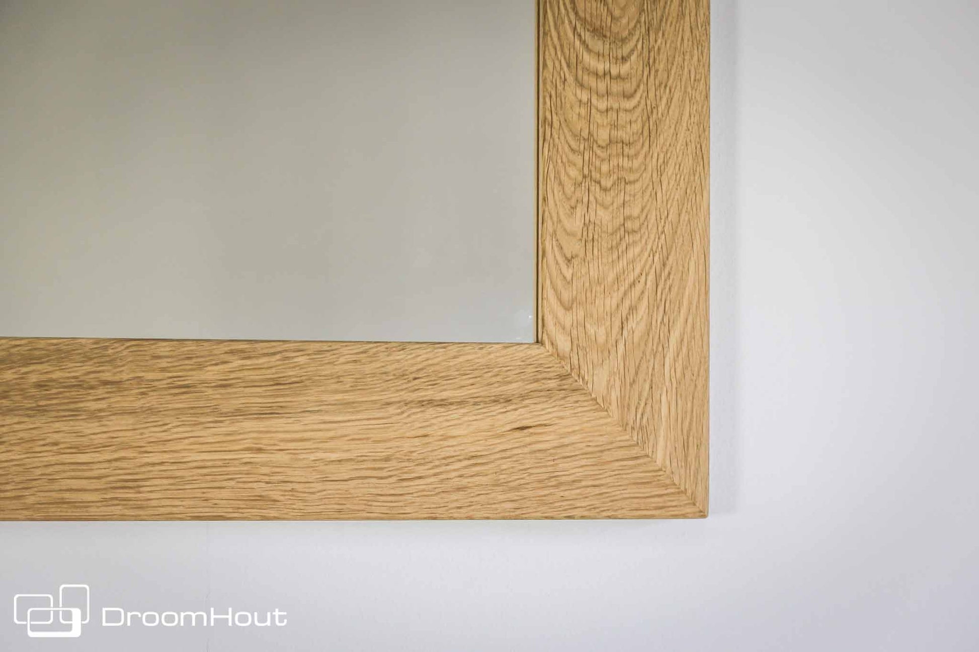 Deze mooie houten badkamerspiegel heeft een lijst van 18 mm dik massief eikenhout. De lijst om de spiegel is 10 cm breed en is mooi in verstek gezaagd. Aan de achterkant is het ophangsysteem mooi ingefreesd.
