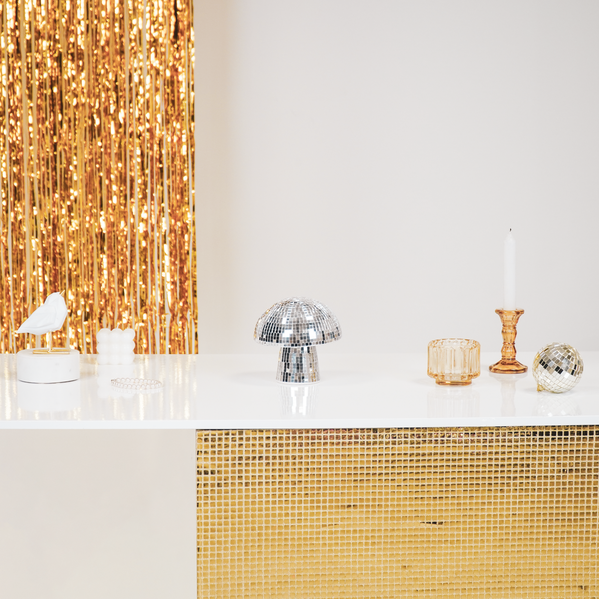 LET'S GROW MUSHROOMS - Disco doet zijn intrede in interieurs en wij omarmen de disco trend! Disco glitters zijn tegenwoordig niet alleen meer in de clubs te vinden, maar shinen ook in interieurs. Deze disco paddenstoel zorgen voor een glitter en sparkle in jouw interieur. Laat onze glitter paddenstoel jouw interieur opvrolijken en maak er een feestje van!
