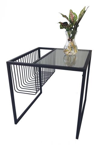 Bijzettafel- Glazen blad met metalen opbergvak- 40x40x40 cm
