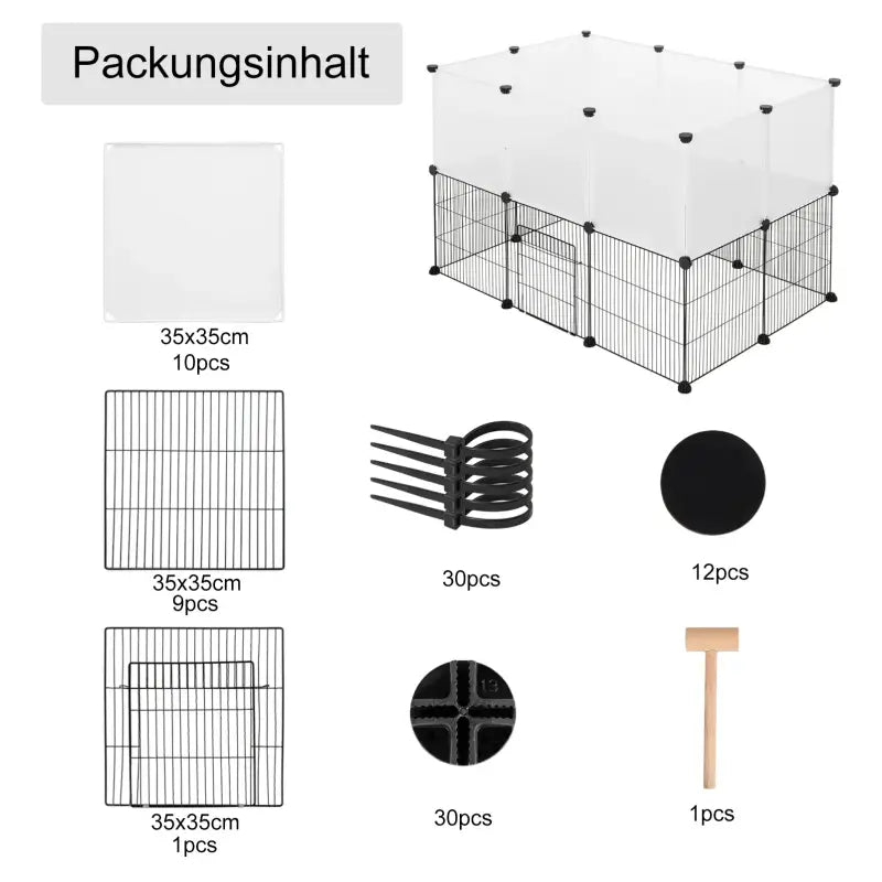 Deze dierenren is zeer praktisch en veelzijdig. Geschikt voor een scala aan kleine huisdieren, van puppies en kittens tot konijnen en hamsters, biedt het een geweldige speelplaats voor elk huisdier. Met het DIY-montagesysteem kunt u de ren eenvoudig naar uw wensen aanpassen en monteren zonder gereedschap. Het pakket bevat alles wat u nodig heeft voor een snelle en probleemloze installatie, waardoor het een ideale keuze is voor huisdiereigenaren die op zoek zijn naar een aanpasbare en functionele speelruimte voor hun huisdieren.