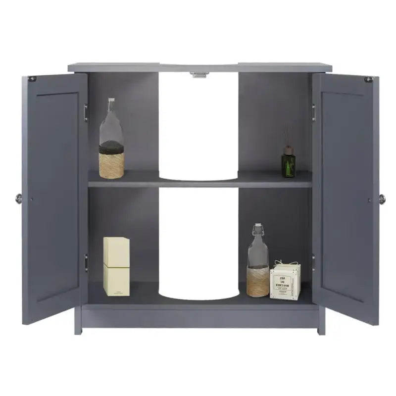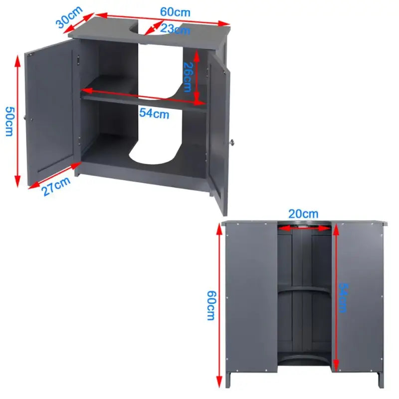 Gemaakt van hoogwaardig MDF (klasse E1), is dit badkamermeubel duurzaam en bestand tegen vocht en water. Het gladde oppervlak is gemakkelijk schoon te maken en te onderhouden, waardoor het perfect is voor gebruik in de badkamer. Met twee ruime compartimenten biedt dit meubel voldoende ruimte voor het opbergen van toiletartikelen, handdoeken en andere kleine items, waardoor uw badkamer opgeruimd en georganiseerd blijft.