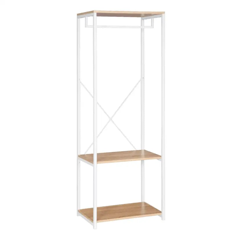 BukkitBow - Kapstok / Kledingrail - Staal en Hout - Inclusief 2 Opbergplanken - Max 20 kg voor Kledingrail - 60x40x167cm