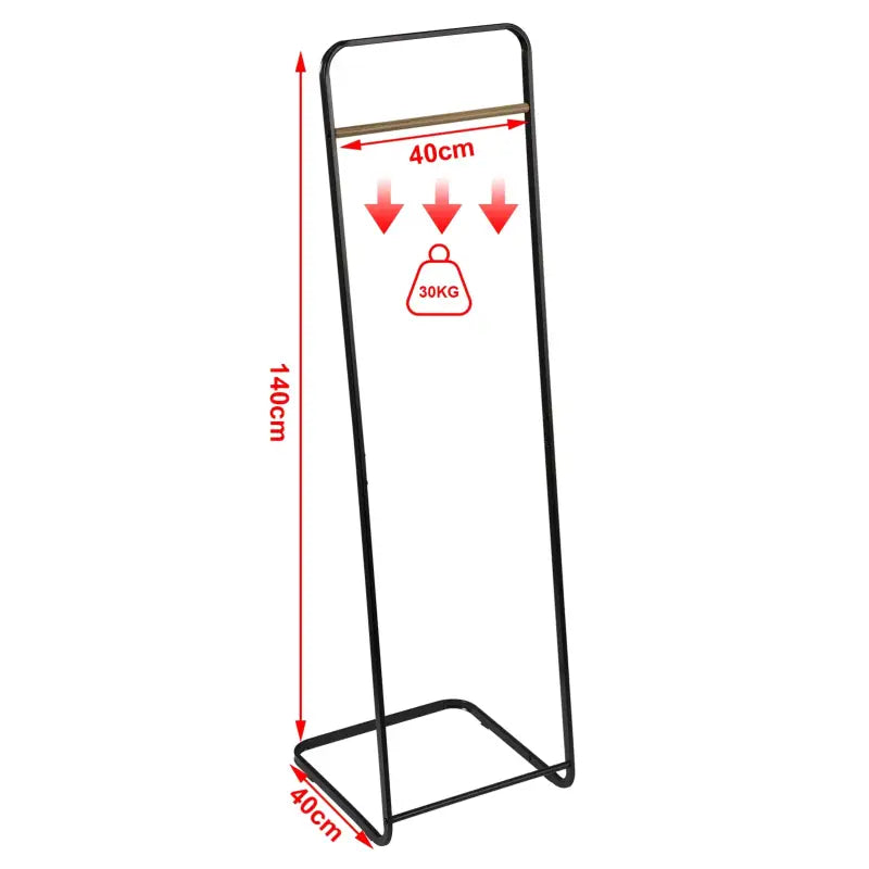 Dankzij het slanke ontwerp neemt deze kapstok weinig ruimte in beslag op de vloer. De afmetingen van ongeveer 40x40x140 cm maken het mogelijk om jassen, lange rokken, overjassen en andere kledingstukken op te hangen zonder veel ruimte in beslag te nemen. Dit maakt het ideaal voor kleine ruimtes zoals gangen, studentenkamers of kantoorhallen.