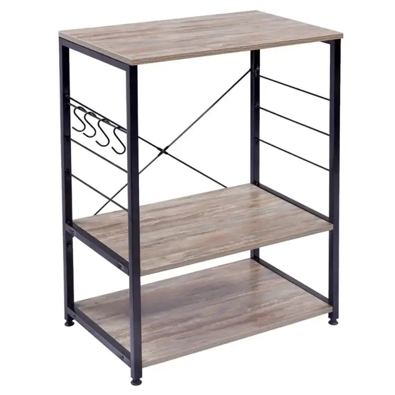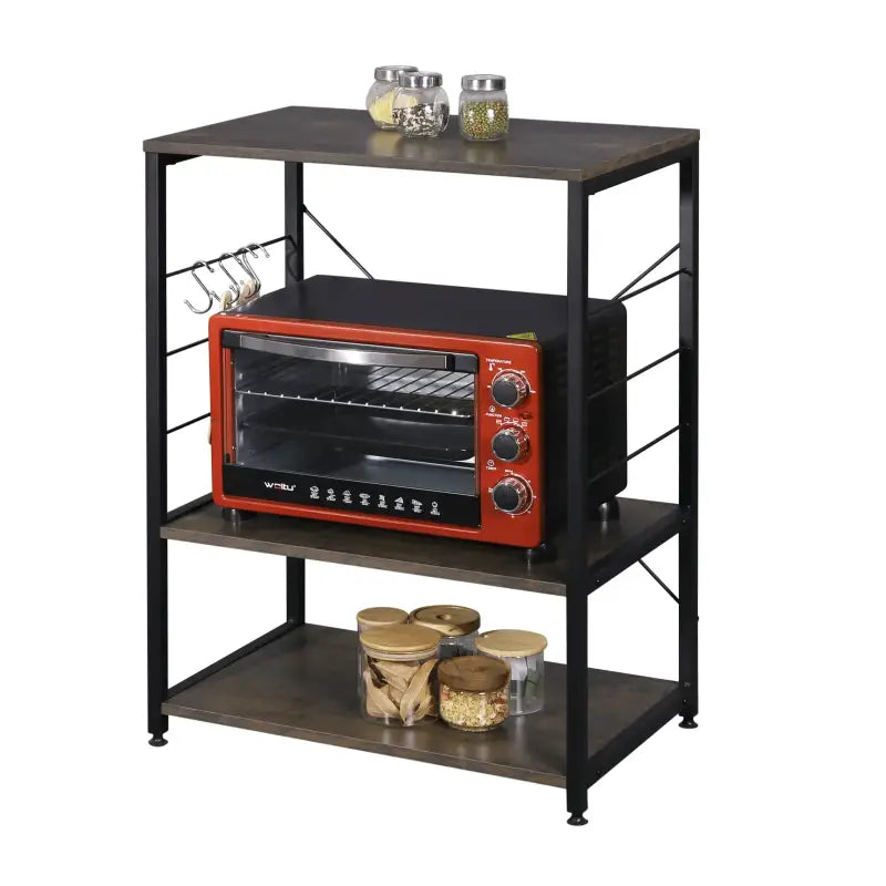 Het klassieke ontwerp van dit kastje maakt het niet alleen functioneel, maar ook stijlvol. De bovenste plank is ideaal voor het plaatsen van uw magnetron, terwijl de onderste plank ruimte biedt voor het opbergen van potten, pannen en andere keukenaccessoires. Bovendien zijn er vier haken inbegrepen om uw lepels, spatels en ander keukengerei op te hangen, waardoor ze gemakkelijk toegankelijk zijn tijdens het koken.