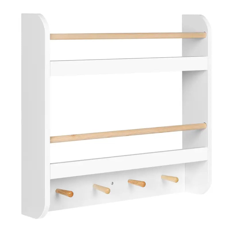 BukkitBow - Kinderboekenplank - Sterk MDF en Grenenhout - 2 Planken met 2 Stangen en 4 Haken - Wandmontage - 60x55x12cm