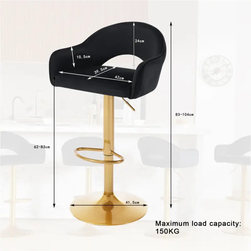 Het ergonomische ontwerp van de barkrukken zorgt voor optimaal comfort tijdens langdurig zitten. De rugleuning en armleuningen ondersteunen comfortabel je rug en armen, terwijl de voetensteun een rustzone biedt voor je voeten en benen, waardoor spierspanning wordt verminderd. Met een draaibare en in hoogte verstelbare zitting (62-83 cm) zijn deze barkrukken veelzijdig inzetbaar, of het nu als barkruk, eetkamerstoel, kaptafelstoel, keukenkruk, en meer is. Vergeet niet om de beschermkap van de gasveer te verwijderen voordat je begint met de montage. Met een set van 2 stuks inbegrepen in het pakket, voeg je eenvoudig een vleugje luxe toe aan je interieur.
