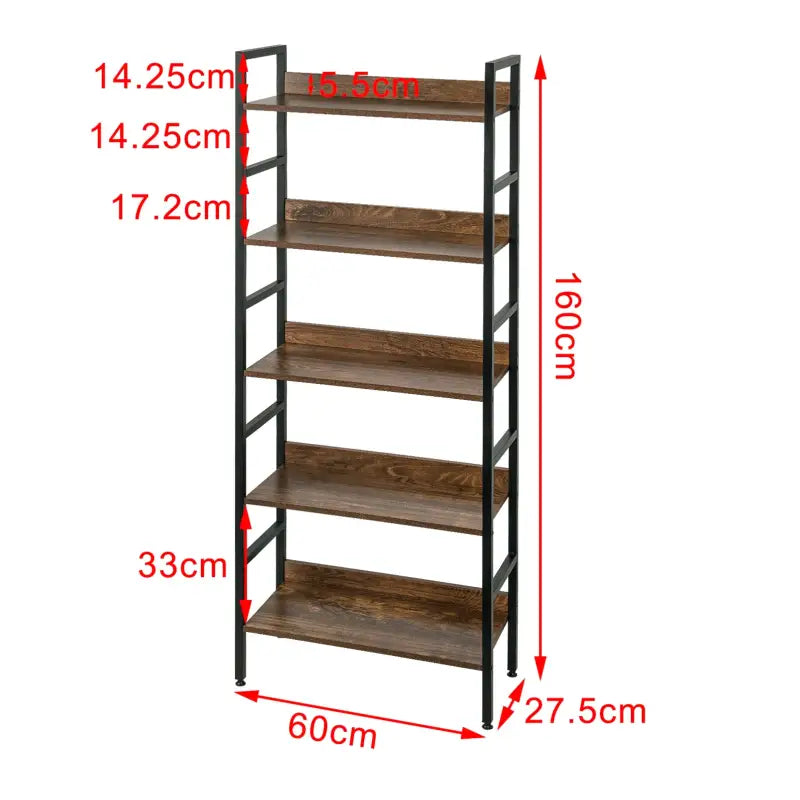 BukkitBow - Metalen/Houten Boekenkast met Frame - Praktische Rekken voor Diverse Ruimtes - Stijlvol Ontwerp - 60x27.5x160cm