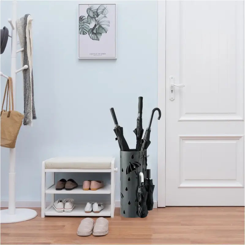 Gemaakt van hoogwaardig metaal met een witte afwerking, biedt deze paraplustandaard een stevige en duurzame oplossing voor het opbergen van paraplu's. Het unieke ontwerp met paraplu's en regendruppels voegt een speels element toe aan je interieur, waardoor het dagelijks leven wordt opgefleurd.