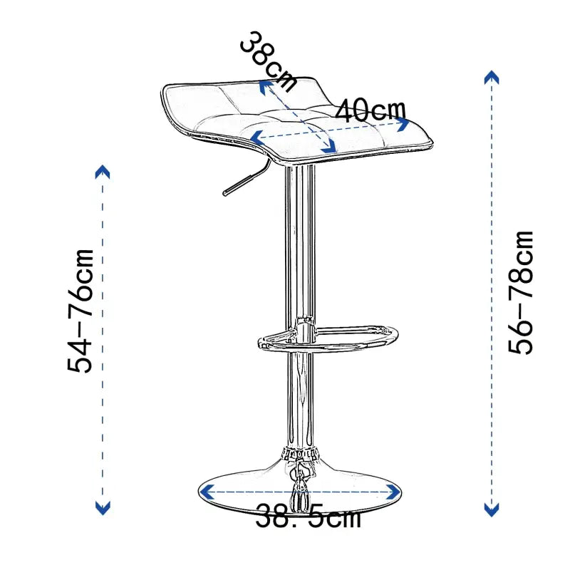 Deze barkrukken zijn veelzijdig inzetbaar en passen perfect in verschillende omgevingen, waaronder keukens, bars, restaurants, en winkels. Met een verstelbare zithoogte tussen 62 en 84 cm kunnen ze worden aangepast aan verschillende tafelhoogtes en gebruikers. De afmetingen van de zitting, ongeveer 38 x 40 cm, bieden voldoende ruimte voor comfortabel zitten, terwijl de robuuste ronde voet met een diameter van ongeveer 38,5 cm zorgt voor stabiliteit en voorkomt krassen op de vloer.