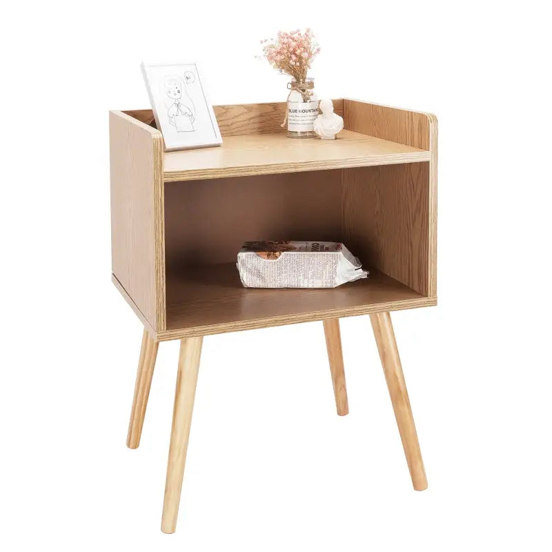 BukkitBow - Nachtkastje - MDF en Massief Hout - Licht Eikenhout - Max Belasting: 5kg - Met Open Opbergvak - 46x38x60cm