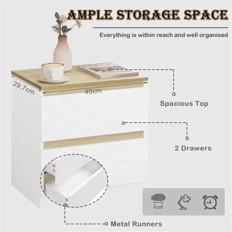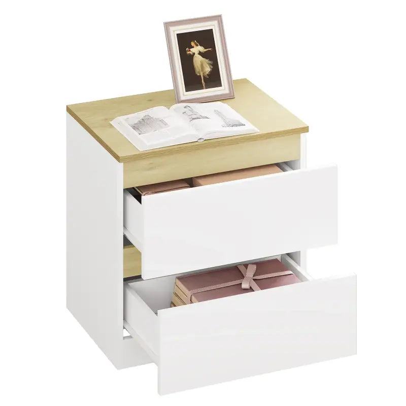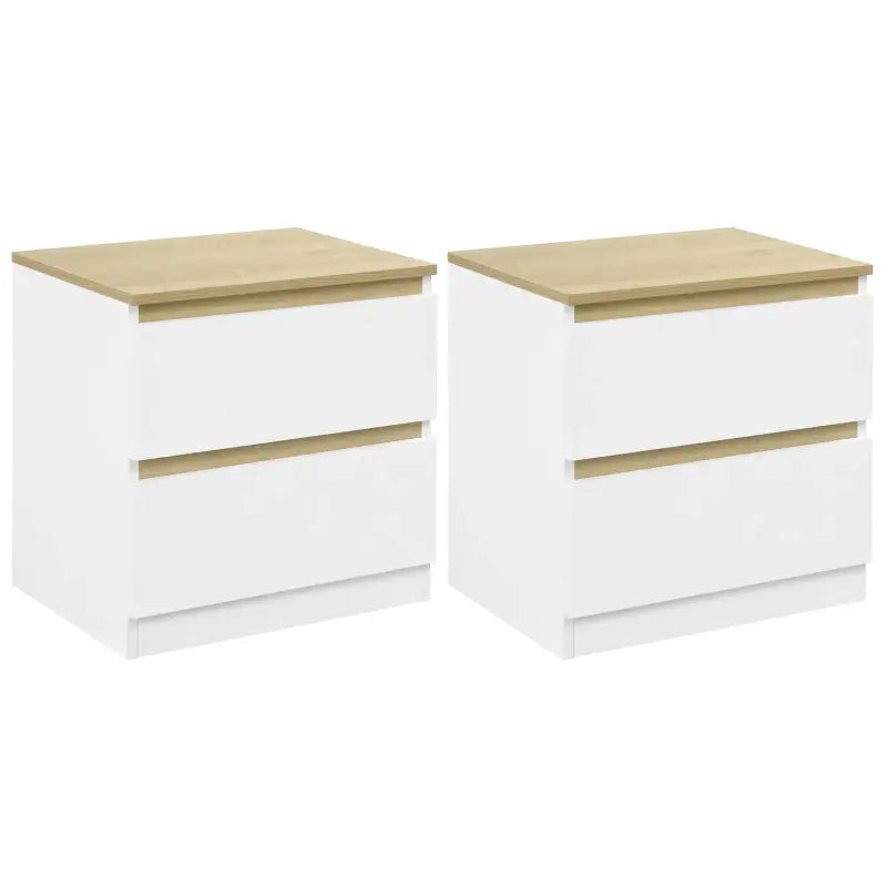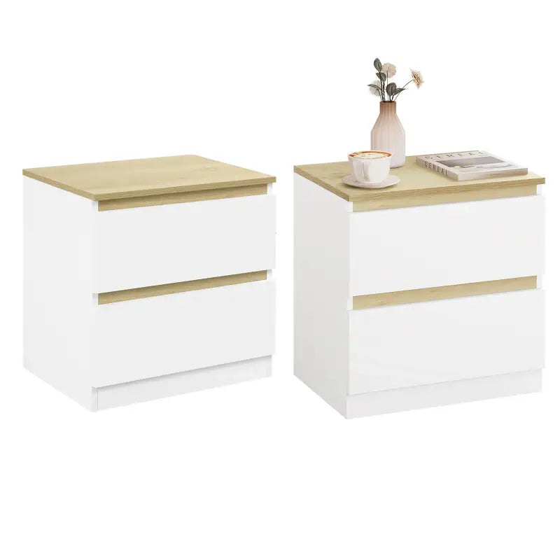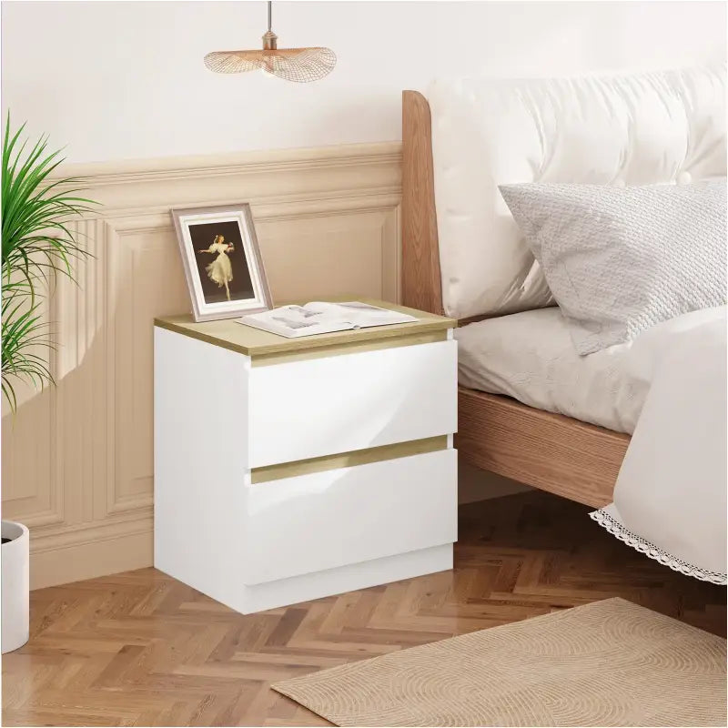 BukkitBow - Nachtkastje met 2 Lades - Stevig Materiaal - Set van 1 of 2 Nachtkastjes - Wit en Licht Eiken Hout - Laadvermogen: 30kg - 40x41x30cm