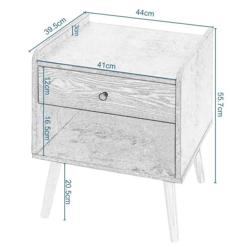 Dit nachtkastje is vervaardigd met hoogwaardige materialen, waaronder hout met fineer en massief houten poten, waardoor het stevig, duurzaam en gemakkelijk te reinigen is. De verhoogde poten maken het reinigen van de vloer eronder eenvoudig, terwijl de antislip vilten pads onder de poten bescherming bieden tegen krassen op de vloer. Met zijn veelzijdige ontwerp kan dit nachtkastje niet alleen dienen als nachtkastje, maar ook als bijzettafel, salontafel of sofa tafel in andere ruimtes van uw huis. De eenvoudige montage-instructies maken het samenstellen van dit nachtkastje een moeiteloze taak, zelfs voor beginners.