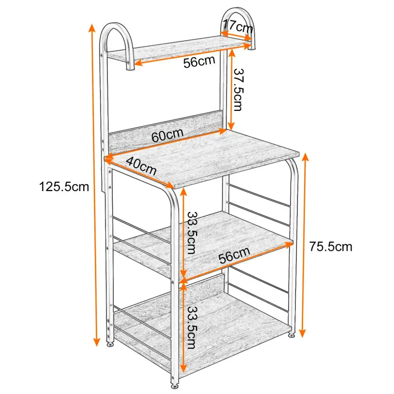 Met een drielaags ontwerp biedt dit opbergrek voldoende ruimte voor het opbergen van diverse voorwerpen, zoals een magnetron, elektrische oven, rijstkoker, servies, decoraties en meer. De klassieke en industriële uitstraling maakt dit opbergrek perfect voor gebruik in de keuken, woonkamer, slaapkamer, kantoor en meer. Het kan dienen als opbergrek, plantenrek, kantoorrek of badkamerrek, waardoor het een veelzijdige toevoeging is aan elke ruimte.