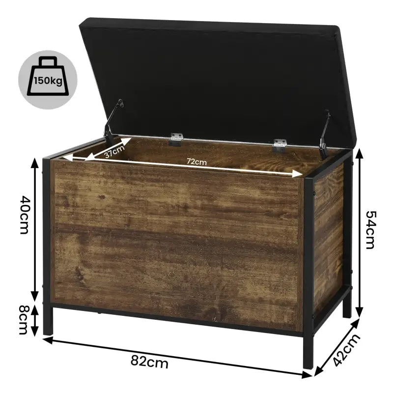 BukkitBow - Opslagkist met Zitkussen - Verborgen Opslag - Vintage Hout Look - Sterk en Duurzaam - Veiligheidsscharnieren - 82x42x54CM