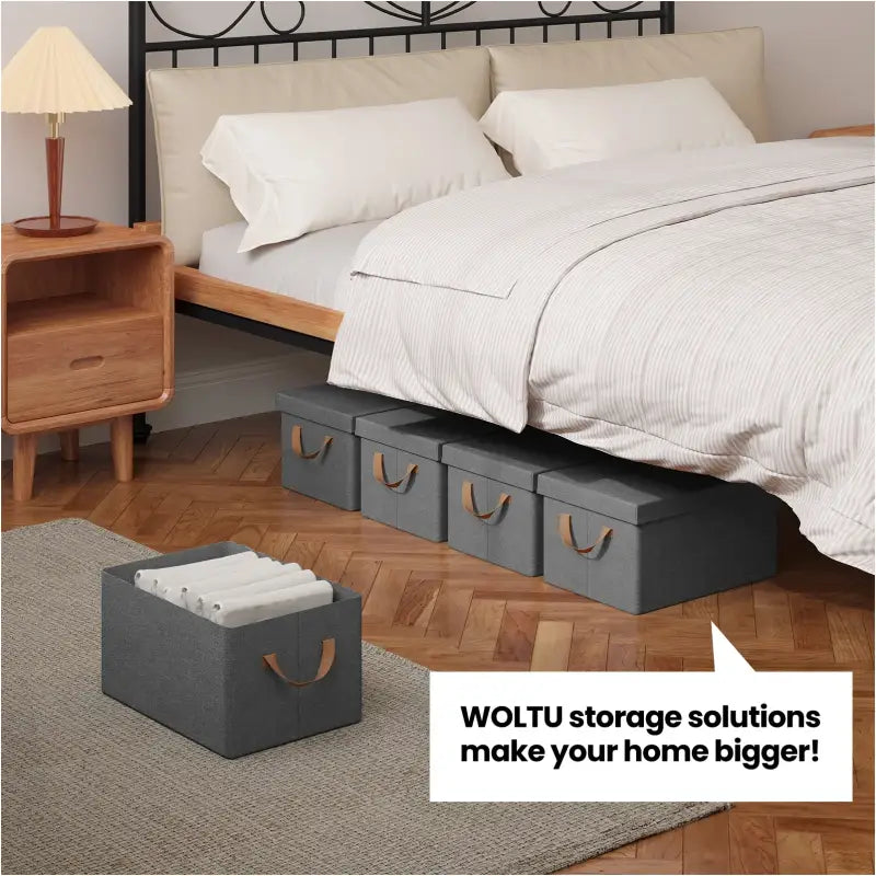 Dankzij het slimme opvouwbare ontwerp kun je de dozen eenvoudig opbergen wanneer ze niet in gebruik zijn. Door het metalen frame omhoog te tillen, kan je de doos plat vouwen en efficiënt opslaan, waardoor je waardevolle ruimte bespaart. Deze opbergdozen zijn ideaal voor gebruik in de kast, op een plank of onder het bed en passen perfect in kleine ruimtes. Of je nu kleding, beddengoed of andere spullen wilt opbergen, deze dozen bieden een elegante en praktische oplossing voor elke opbergruimte