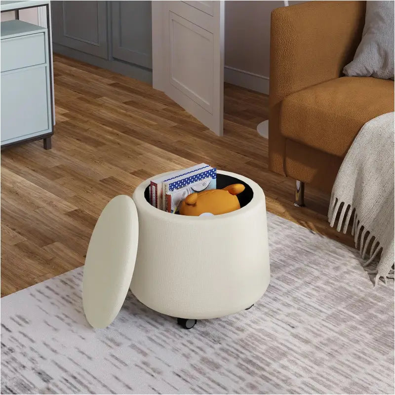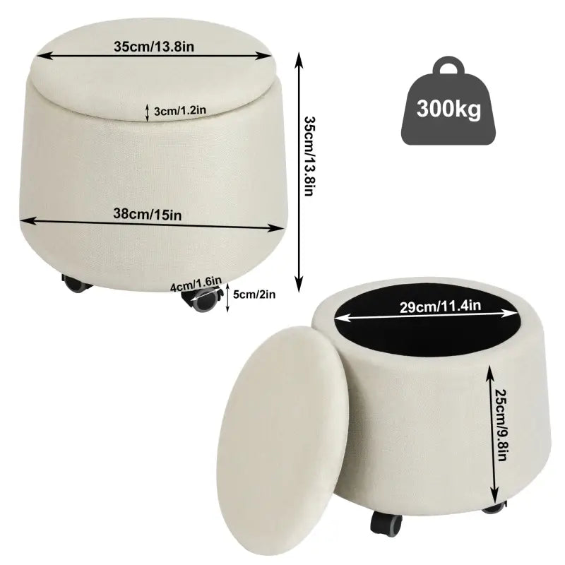 Ontdek de charme van de BukkitBow ronde opbergpoef, perfect voor elk modern interieur. Vervaardigd uit hoogwaardig linnen en E1-klasse MDF, biedt deze poef niet alleen een zachte zitervaring dankzij de vulling van elastisch schuim met hoge dichtheid, maar voegt ook een elegante toets toe aan uw huis met zijn crèmekleurige afwerking. Met een indrukwekkende draagcapaciteit van 300 kg is deze poef zowel robuust als aantrekkelijk, ideaal voor dagelijks gebruik.