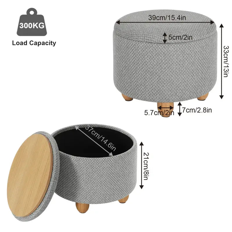 BukkitBow - Ronde Opbergpoef – Poef / Zitkist met Deskel - Voetenbank met Opbergruimte - 39x39x33 cm