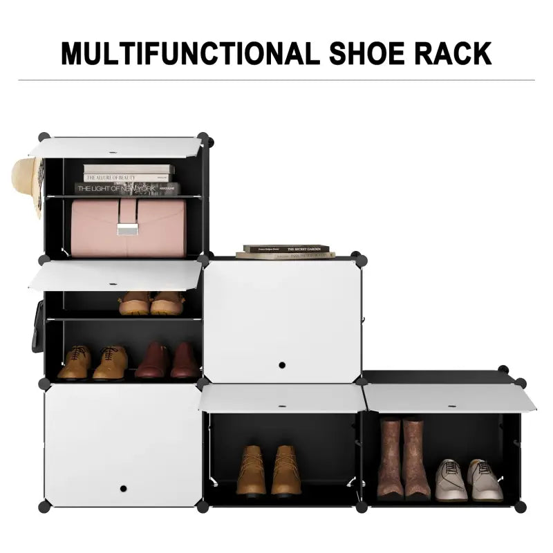 BukkitBow - Schoenenkast Met 6 Compartimenten Zwart/Wit (36,5X94X109CM)