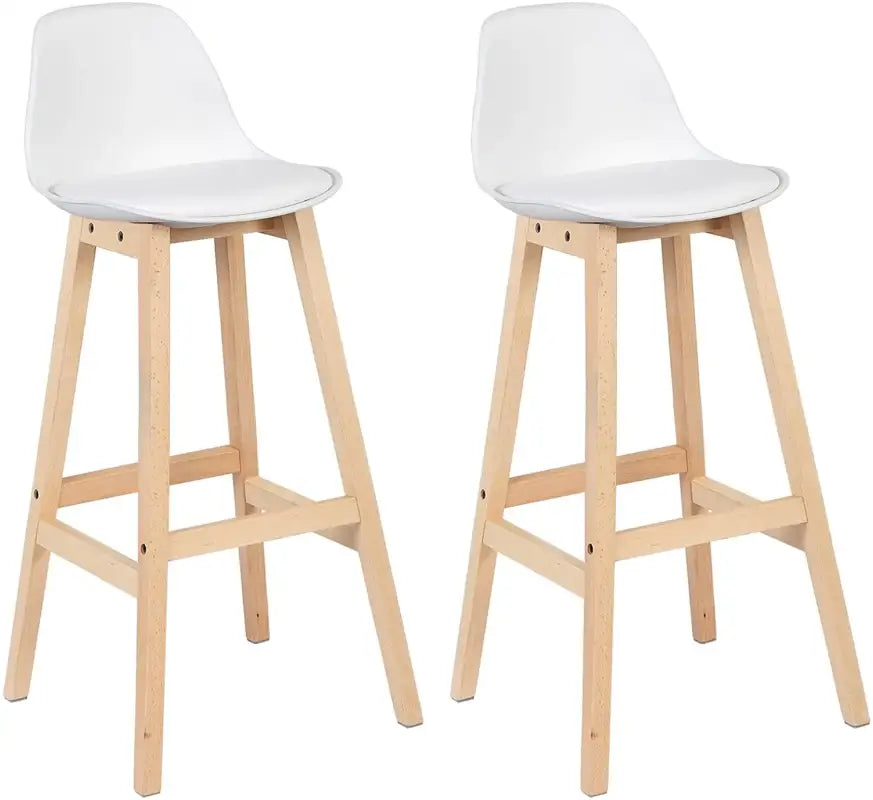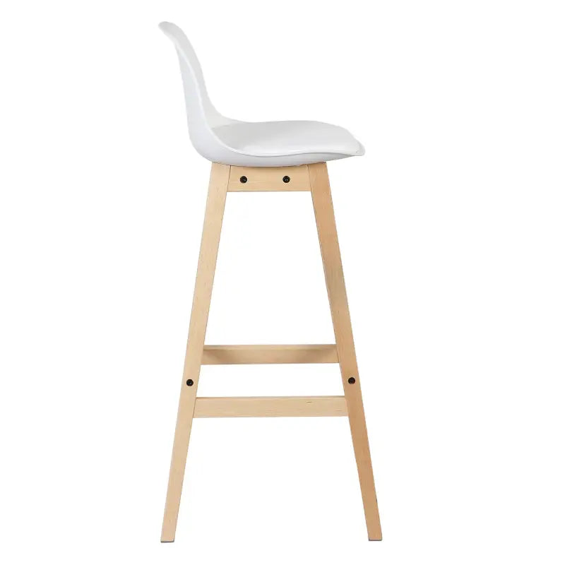 Dankzij het eenvoudige en ergonomische ontwerp bieden deze barkrukken een comfortabele zitervaring, zelfs bij langdurig gebruik. De zitting is bekleed met zacht en dik kunstleer, en de goede vulling zorgt voor een comfortabele zithouding. De stevige houten poten bieden stabiliteit en kracht, terwijl de voetensteun extra gemak biedt tijdens het zitten.