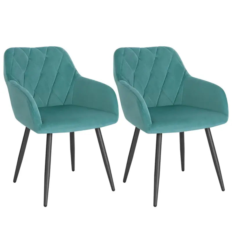 Geef je eetkamer een vleugje elegantie met dit setje van twee eetkamerstoelen van BukkitBow. Met een verfijnd ontwerp en luxe uitstraling voegen deze stoelen een stijlvolle touch toe aan elke eettafel. De combinatie van zachte fluwelen bekleding en stevige metalen poten zorgt voor een perfecte balans tussen comfort en duurzaamheid.