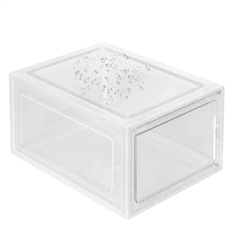 De schoenenopbergdozen zijn volledig transparant, waardoor je gemakkelijk je schoenencollectie kunt zien zonder de dozen te openen. Gemaakt van hoogwaardig ABS en hard plastic (PP), bieden deze dozen een stabiele en duurzame opslagoplossing die waterdicht en bestand is tegen vervorming. Ze zijn eenvoudig te monteren en schoon te maken, waardoor ze ideaal zijn voor gebruik in de garderobe, onder de trap of zelfs in de badkamer.
