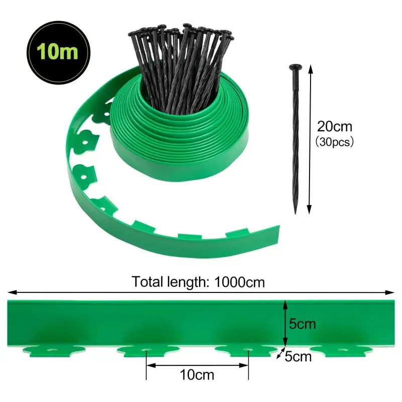 De BukkitBow Tuinrand biedt een veelzijdige oplossing voor het afbakenen van uw tuin of gazon. Gemaakt van hoogwaardig PE-materiaal, is deze flexibele borderrand milieuvriendelijk, sterk en elastisch. Het is bestand tegen slijtage, corrosie en scheuren, waardoor het niet gemakkelijk breekt of scheurt. Deze tuinrand is UV-bestendig, waardoor het niet broos wordt of barst na langdurige blootstelling aan de zon in de zomer. Of u nu een rechte, ronde of gebogen vorm wilt creëren, deze tuinrand buigt gemakkelijk naar elke hoek, waardoor u een tuin kunt creëren die voldoet aan uw verbeelding.