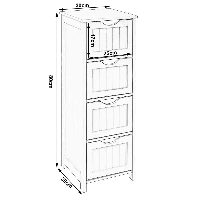 De BukkitBow Veelzijdige Badkamerkast is de perfecte aanvulling voor elke badkamer. Met zijn compacte afmetingen van 30x30x81cm biedt deze kast veelzijdige opbergmogelijkheden met 4 ruime laden. Gemaakt van hoogwaardig MDF (klasse E1), is deze kast stevig, duurzaam en bestand tegen vocht, waardoor het ideaal is voor gebruik in vochtige omgevingen zoals de badkamer.