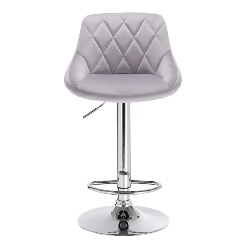 BukkitBow - Verstelbare Barkruk - Verchroomd Staal en Fluweel - Ergonomisch met Hoge Rugleuning - 60-82cm Zithoogte