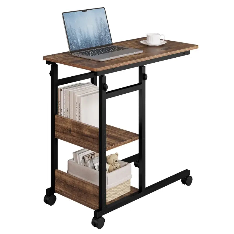 BukkitBow - Verstelbare Bijzettafel op Wielen - Vintage Hout met Zwart Metalen Frame - Ruimtebesparend en Multifunctioneel