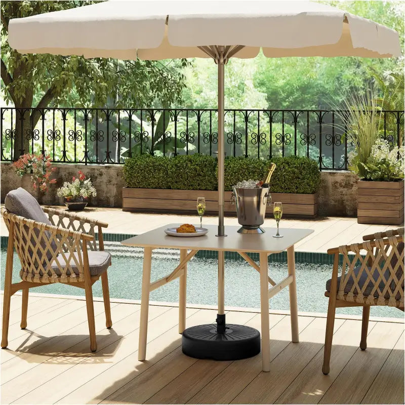 De BukkitBow Vulbare Parasolvoet is uw ideale partner voor zonnige dagen en onverwachte windvlagen. Deze parasolvoet, gemaakt van hoogwaardig HDPE en metaal, is ontworpen om de tand des tijds te doorstaan met een weerstand tegen UV-straling, vocht en slijtage. Met een inhoud van 22 liter biedt deze ronde parasolvoet een stevige ondersteuning voor parasols met een stokdiameter van 38 tot 48 mm. Of u nu ontspant op uw balkon, terras, in de tuin, of geniet op het strand, deze parasolvoet zorgt ervoor dat uw parasol zelfs in winderige omstandigheden stabiel blijft staan.