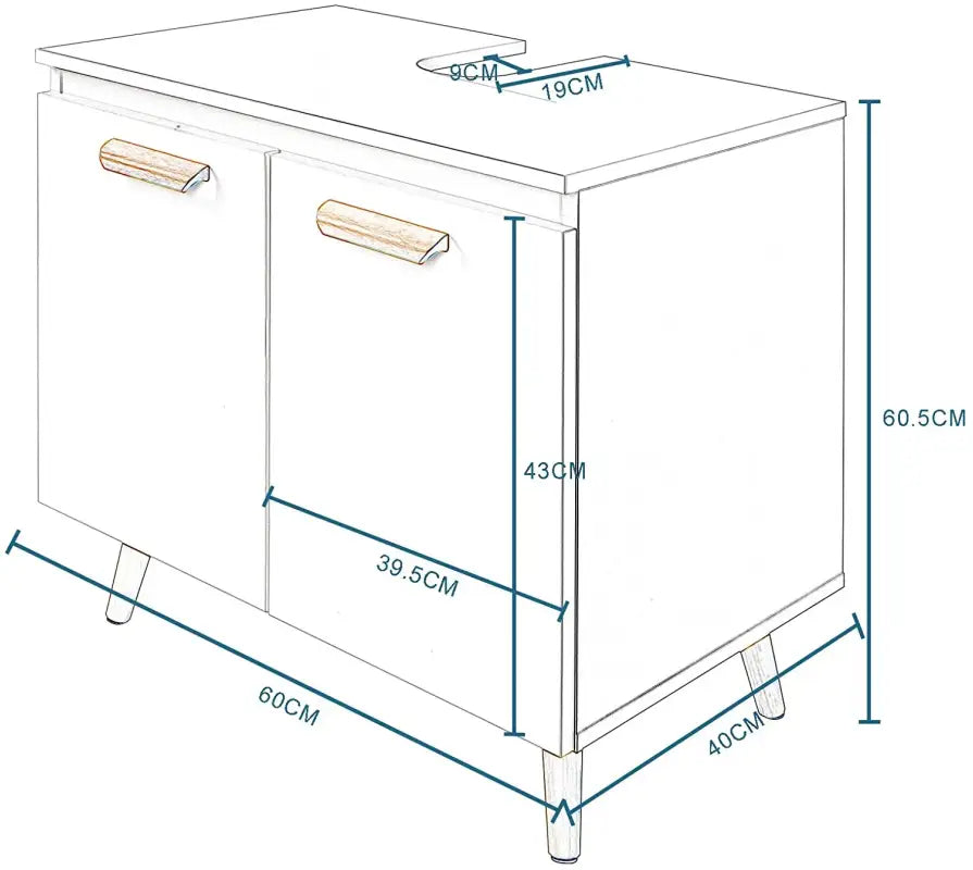 BukkitBow - Wastafel Kast / Badkamermeubel - Met Sifon Uitsparing - Vochtbestendig - Stevige Houten Poten - 60x40x60.5cm