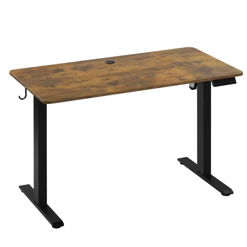 Het BukkitBow zit-sta bureau is ontworpen met stabiliteit, duurzaamheid en stijl in gedachten. Het beschikt over een ruim tafelblad van 120 x 60 cm of 140 x 60 cm met afgeronde hoeken en kabeldoorvoer, evenals twee haken voor het ophangen van hoofdtelefoons of tassen. Het bureau is gemaakt van een versterkt metalen frame in T-vorm en E1-kwaliteit spaanplaat, waardoor het extreem robuust is en tot 80 kg kan dragen. Met een geluidsniveau van minder dan 50 dB werkt dit bureau stil en onopvallend, waardoor u zich volledig kunt concentreren op uw taken. Het wordt geleverd met een eenvoudig te monteren montagekit en gedetailleerde instructies, waardoor u snel en gemakkelijk aan de slag kunt.