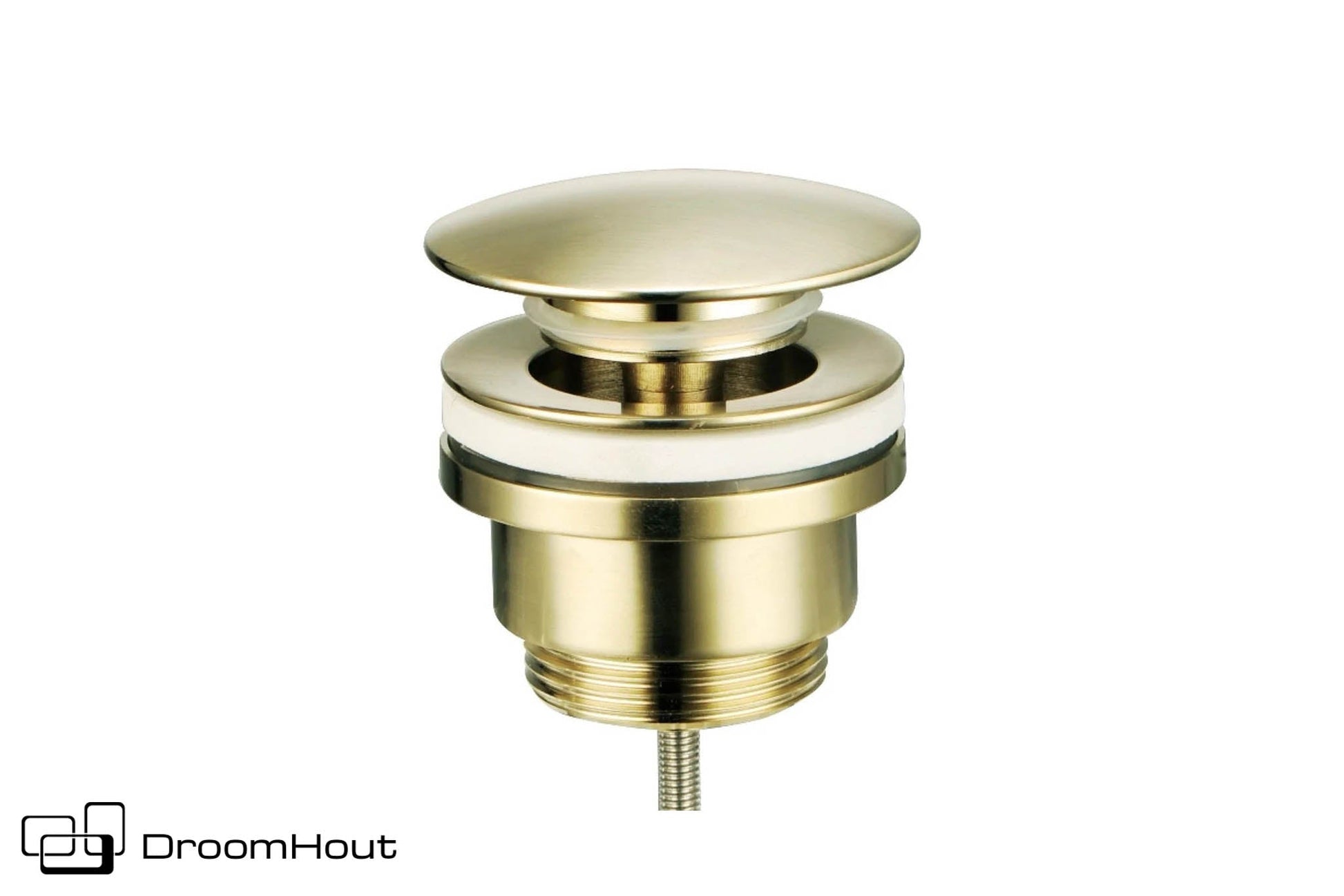 Deze geborsteld goud clickwaste is een onmisbaar detail in jouw badkamer of toiletruimte. Perfect te combineren met een geborsteld goude kraan, zodat je een prachtig geheel creëert. Bestel vandaag nog bij DroomHout en geniet van stijlvol gebruiksgemak!