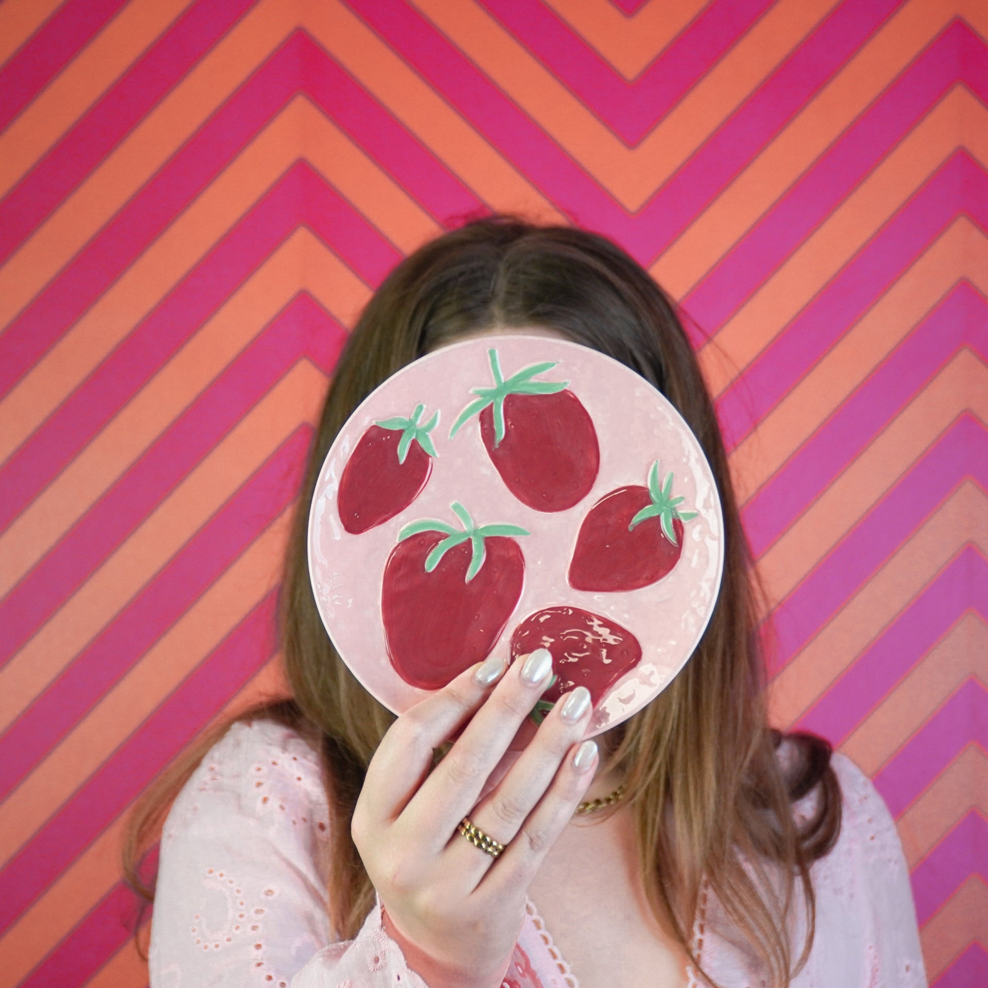 VOOR ALLE FRUITLIEFHEBBERS- Voeg een zoete en speelse touch toe aan je interieur met dit vrolijke decobord met geschilderde aardbeien erop. Het bord is gemaakt van hoogwaardig keramiek en uitgevoerd in frisse roze en rode tinten. Met zijn formaat van 17,5 x 17,5 x 2 cm is het perfect als decoratief bord op tafel, in de keuken of op een plankje in de woonkamer.