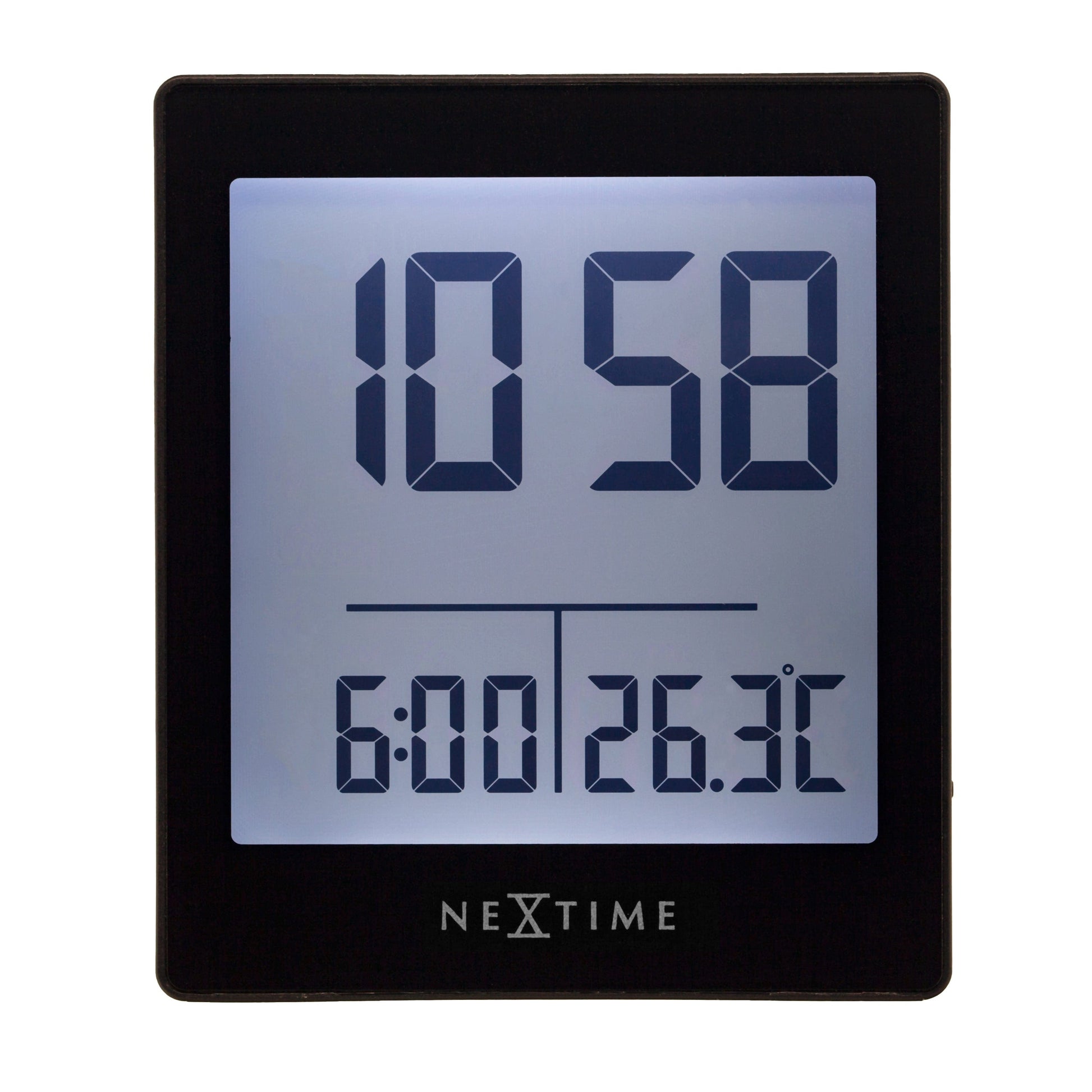 Introducing NeXtime's "Wake Up" Digital Table Alarm Clock – a modern 7.7x8.9x3cm timekeeping marvel. Featuring Radio Controlled Clock (RCC) precision, it not only wakes you up on time but also displays the temperature. In crisp white or black ABS, the "Wake Up" combines functionality with contemporary style, ensuring a smart and timely start to your day.