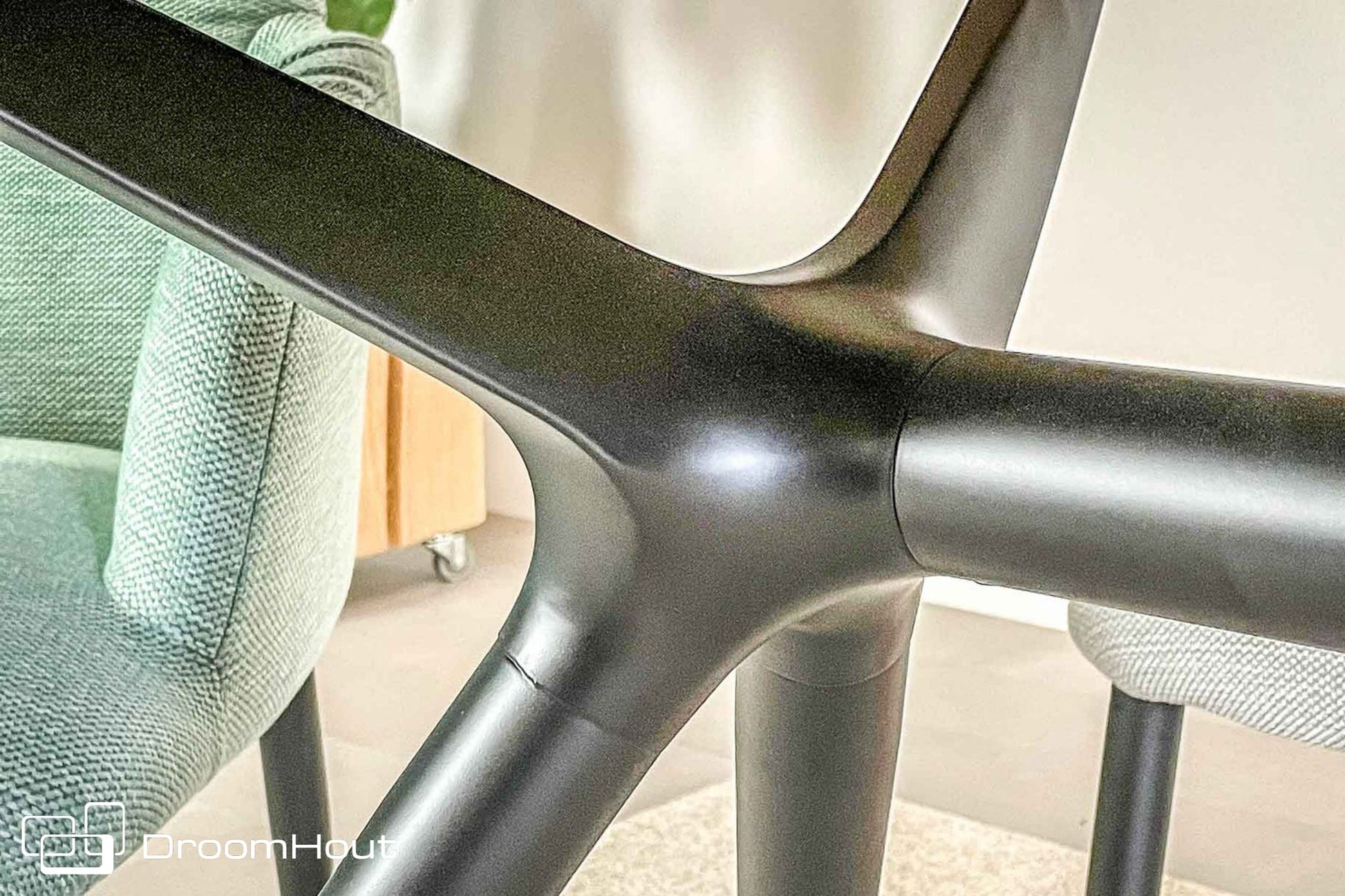 De vorm van het frame maakt deze eettafel écht uniek in zijn soort. Het strakke frame oogt minimalistisch maar geeft toch die fraaie finishing touch. Het frame is gemaakt van verchroomd metaal met ronde buizen en aan de onderkant zijn de pootjes geknikt en verstelbaar. Ze staan schuin en lopen wat naar binnen. Dit geeft ruimte en de tafel staat dus super stevig. Daarnaast staat het letterlijk niet in de weg. Het is niet te druk in het zicht, ideaal. Het voordeel van dit onderstel voel je echt wanneer je aanschuift. Je zit namelijk heerlijk vrij, geen poot in de weg. Lange benen? Geen probleem bij dit ontwerp. Ook is het onderstel te verkrijgen is in maar liefst 2 fraaie tijdloze kleuren. Kies hierbij het kleur tafelblad wat je mooi vindt en match deze bij de ideale eetkamerstoel. We helpen je graag. Denk eens aan een super comfortable Mood #91, Mood #95. Kies je eigen gekozen stof en creëer zo een complete gave eethoek in een handomdraai. Ook een hele fijne combi is de minimalistische strakke eetkamerstoel Stacks. De kleur level matcht perfect met het taupe kleur onderstel. Kom lekker proefzitten in Utrecht, we helpen je graag!