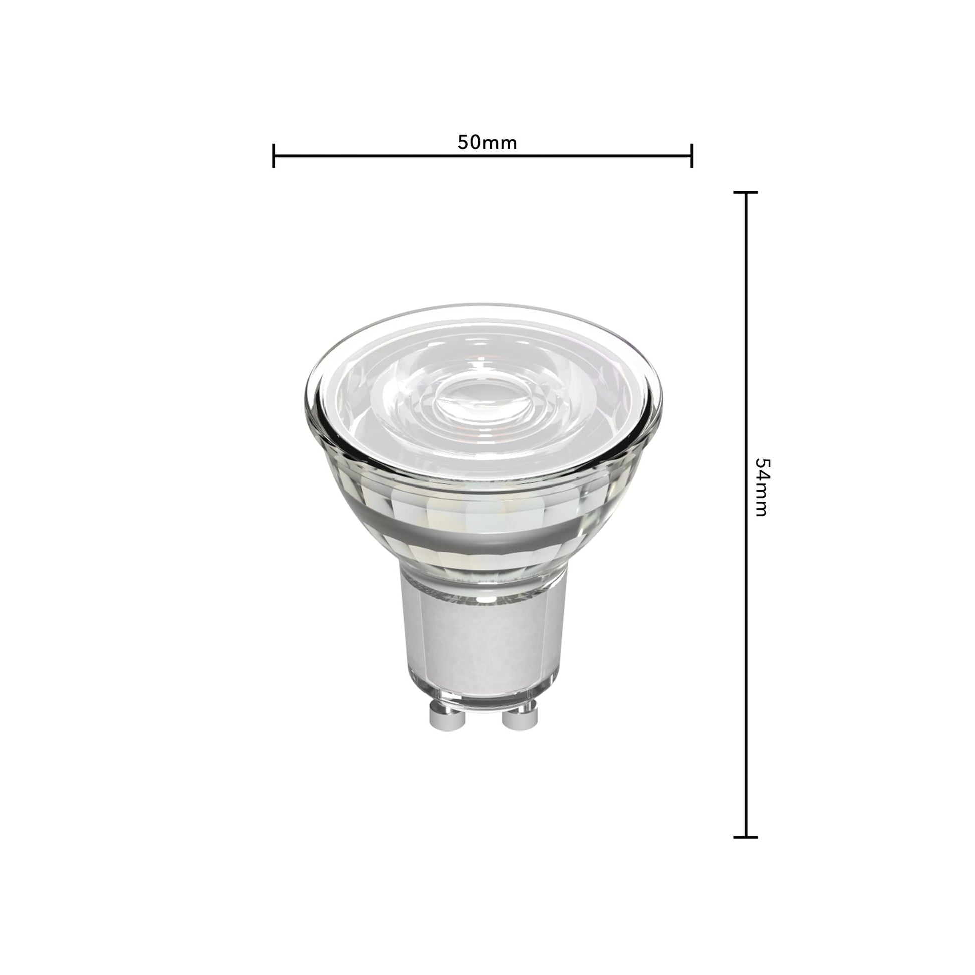 Deze LED GU10 spot is de perfecte keuze als je op zoek bent naar energiezuinige spotjes die je kunt dimmen. Met een lichtopbrengst van maar liefst 540 lumen vervangt deze LED spot traditionele spotjes van 75 watt, terwijl hij slechts 5.7 watt verbruikt. Dat betekent dat je tot wel 90% kunt besparen op je energierekening, terwijl je toch geniet van een heldere en sfeervolle verlichting.