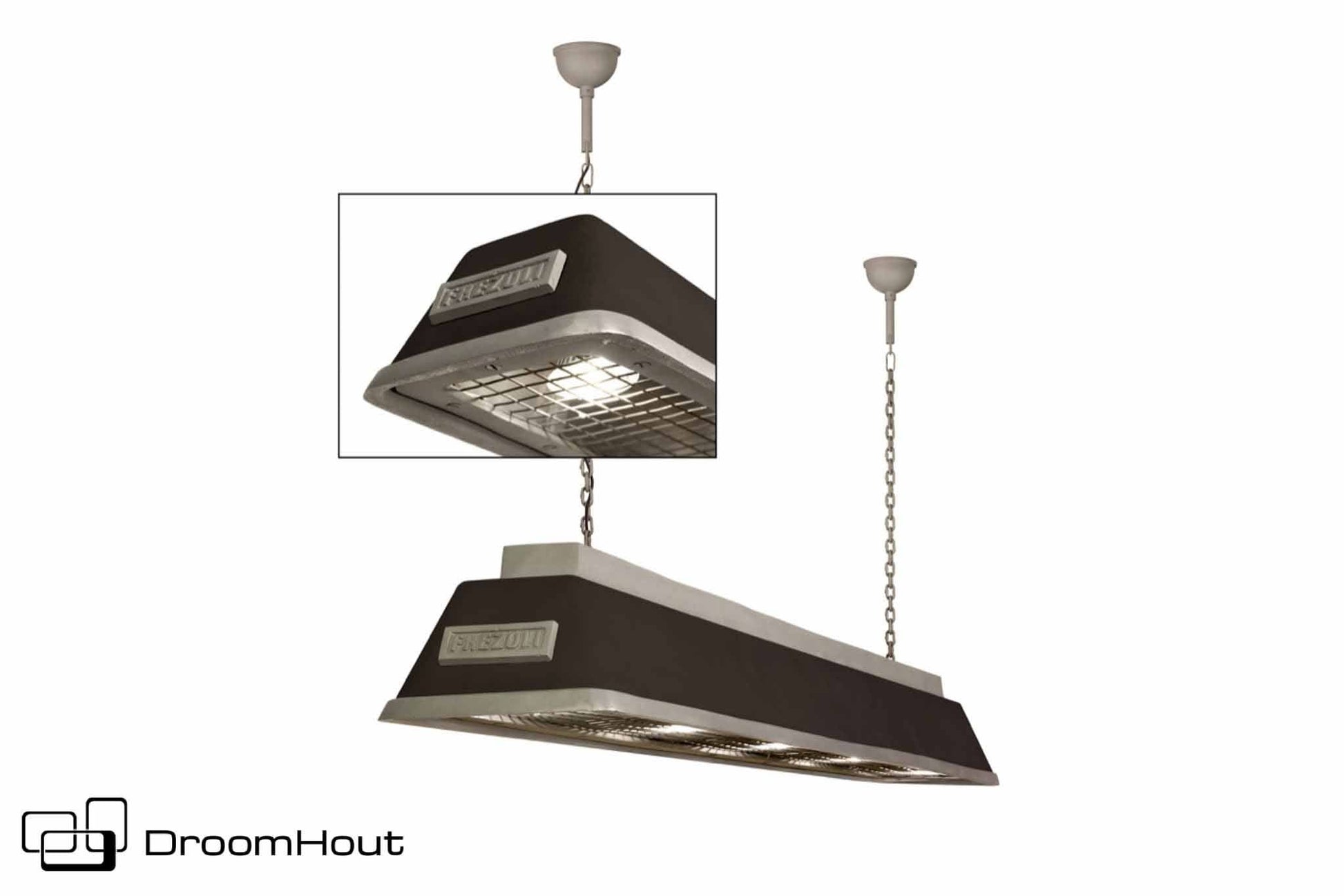 De industriële hanglamp Frezoli Bizz is een prachtige authentieke lamp uit de Frezoli familie, waar ook de ronde hanglamp Frezoli Lozz vandaan komt. Deze hanglamp Frezoli Bizz is gemaakt van gegoten aluminium, wat hem de ultieme industriële look geeft. De industriële hanglamp Frezoli Bizz hangt aan twee robuuste kettingen die de uitstraling van deze hanglamp helemaal compleet maken. Deze industriële hanglamp komt buitengewoon goed tot zijn recht boven een mooie grote robuuste tafel. Op de foto is de lamp mooi, in het echt nog veel mooier en stoerder! Geloof ons, je kunt er niet omheen.