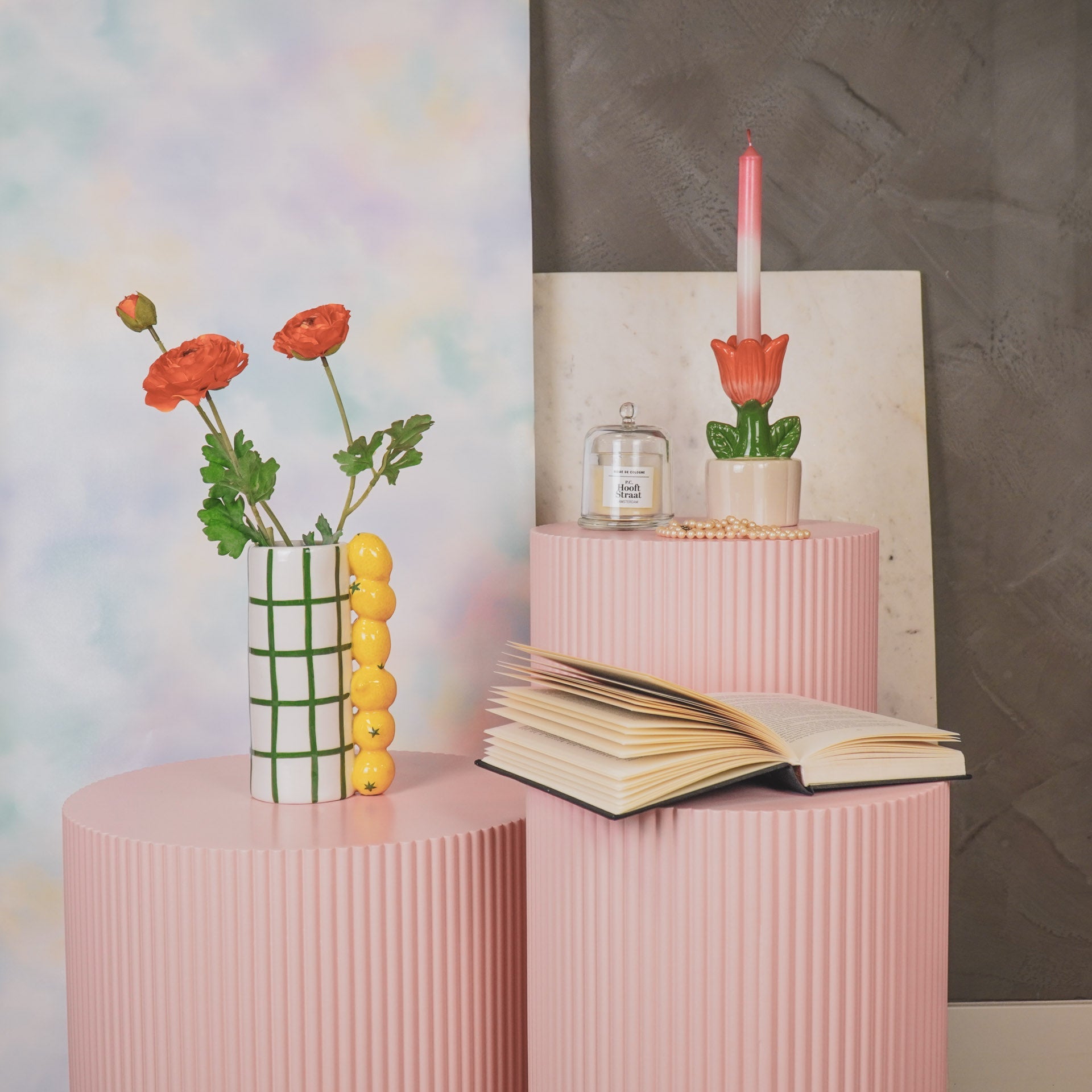 Kaarsen -Dipdye Dinerkaars- Neon Groen/Wit/Roze - S4 - 2,1x25 cm