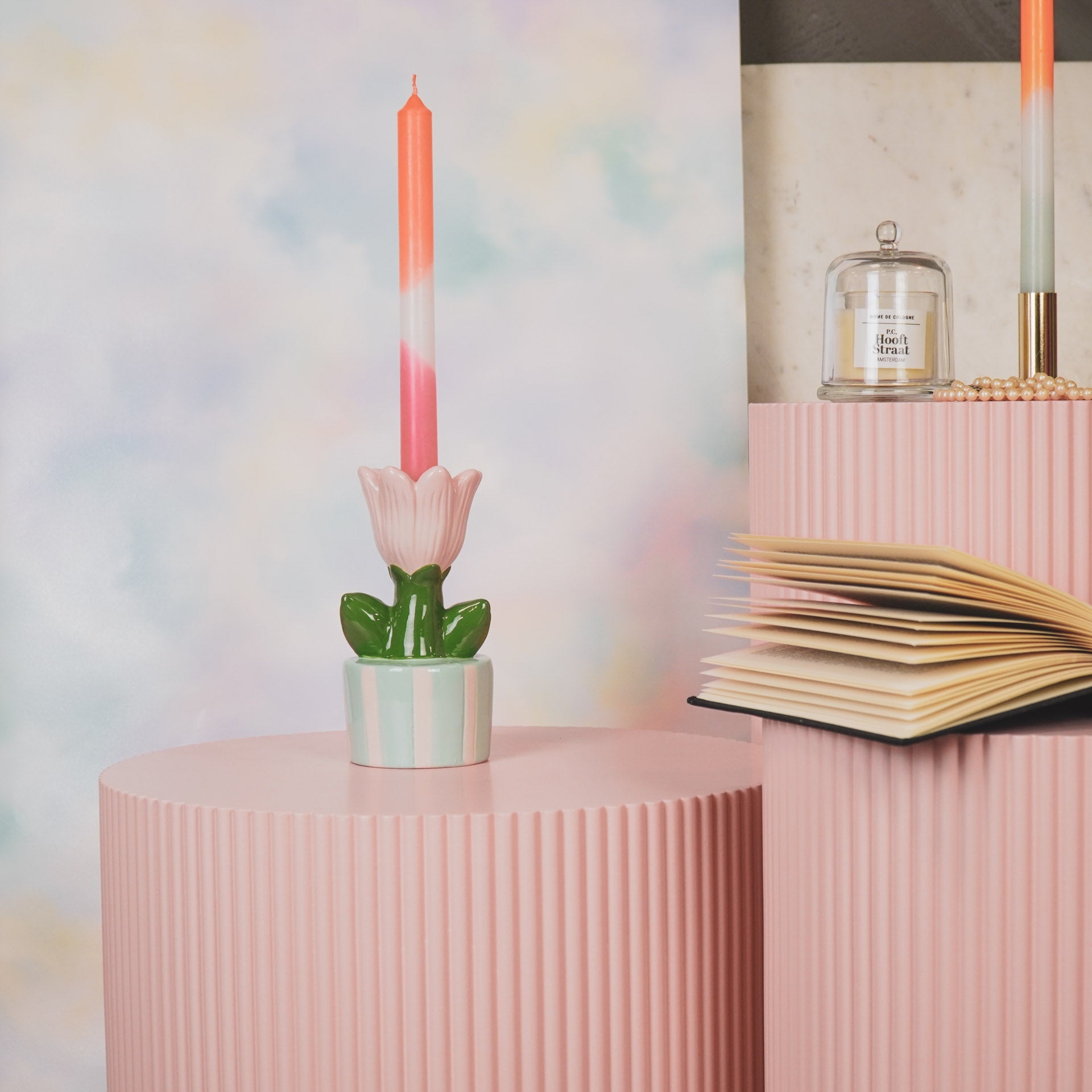 Kaarsen - Dipdye Dinerkaars - Neon Roze/Wit/Neon Rood - S4 - 2,1x25 cm