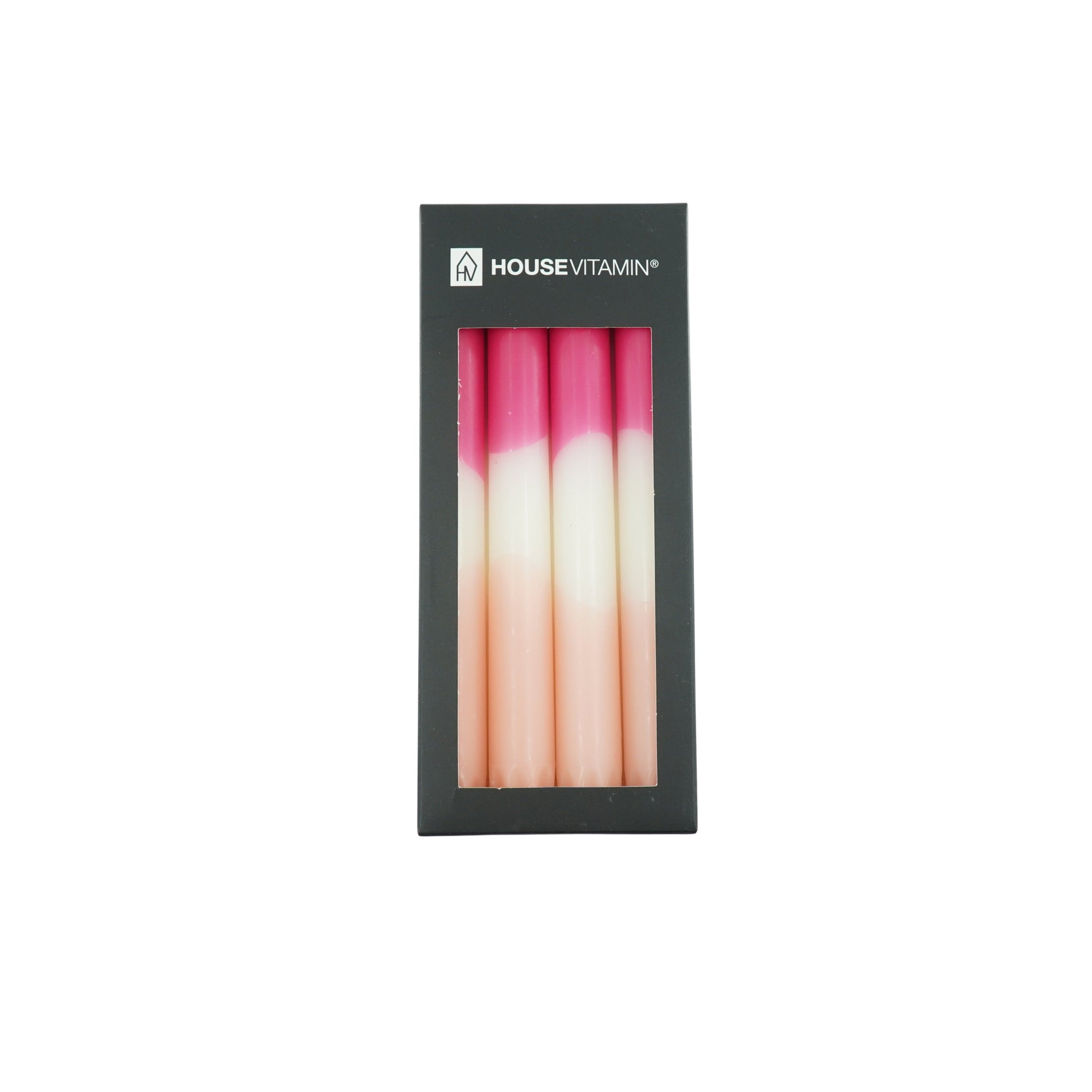 Kaarsen - Dipdye Dinerkaars- Roze/Wit - S4 - 2,1x20 cm