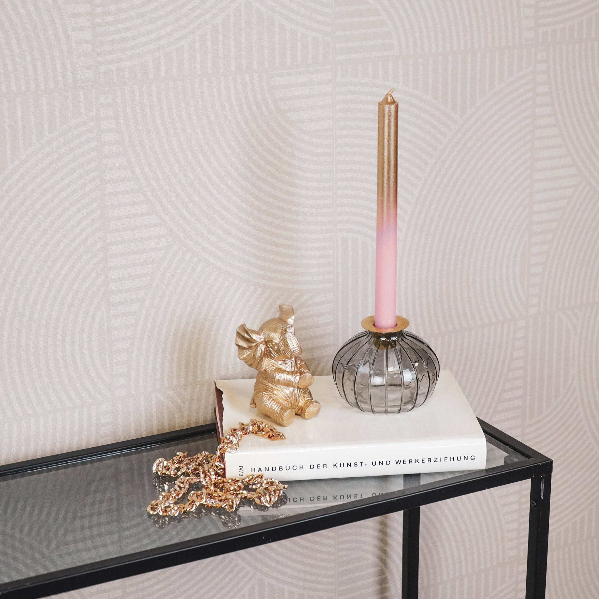 - Gemaakt van rook glas en goudkleurig metaal