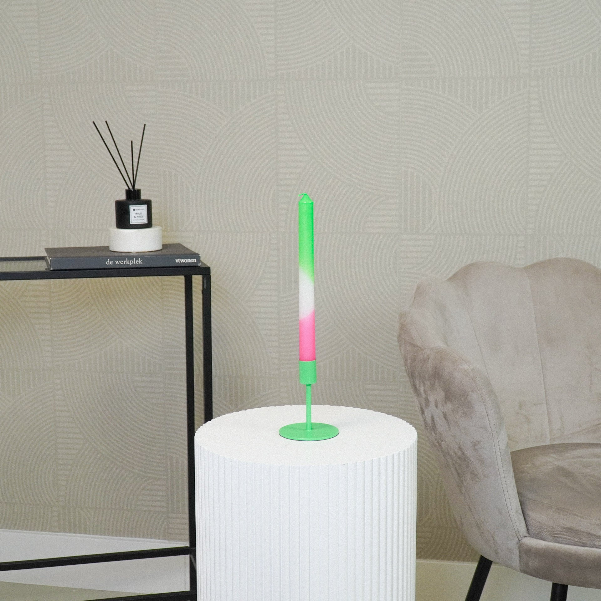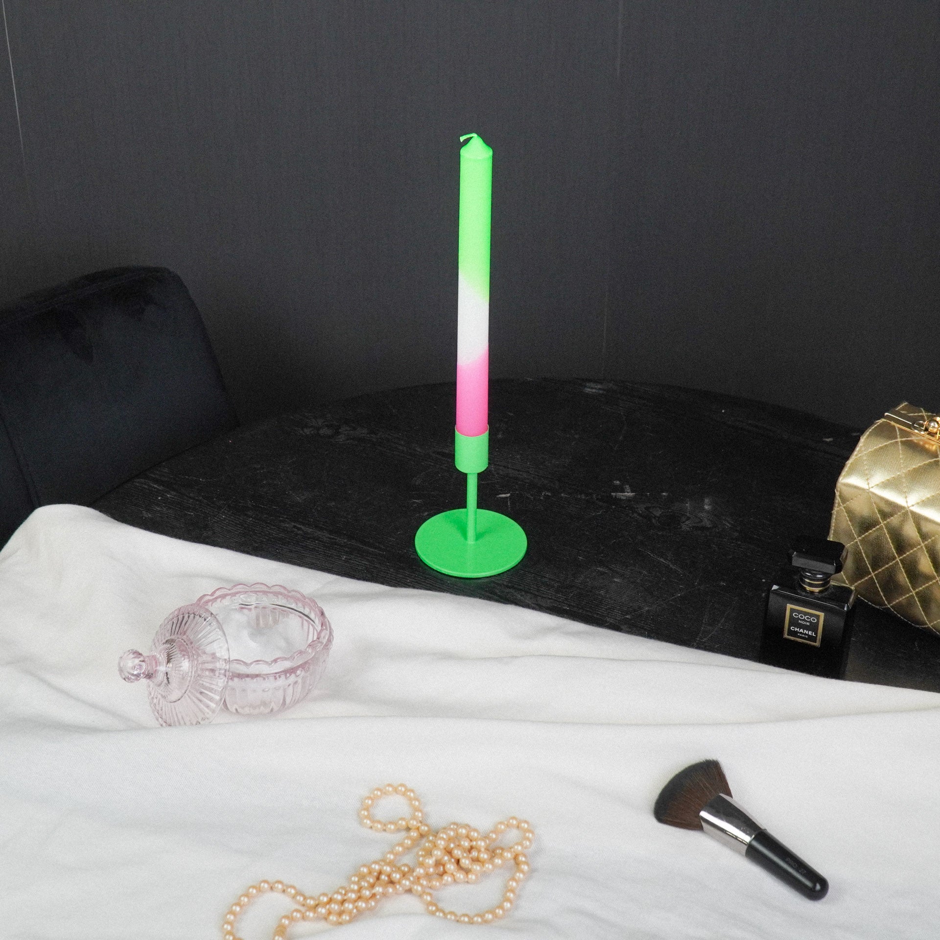 EEN INTERIEUR ZONDER KANDELAREN IS EEN INTERIEUR ZONDER ZIEL- Licht je interieur op met deze prachtige metalen kaarshouder van Housevitamin! De fel groene kleur geeft een speelse uitstraling en fleurt jouw interieur op. Met een afmeting van 8x8x10 cm is deze kandelaar ideaal voor een dinerkaars. Creëer een gezellige sfeer als de schemer intreedt en geef je eettafel de finishing touch die het verdient. Laat je interieur stralen met deze must-have accessoire!